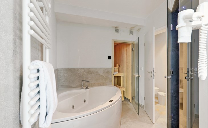 De open badkamer presenteert zich als een privé wellnessruimte met stoombad en dubbele regendouche en is toegankelijk via de slaapkamer. Je kunt ook ontspannen in de sauna of whirlpool. Koffieliefhebbers vinden een Nespresso-apparaat in de keuken (neem je eigen capsules mee), evenals een thermoskan en een handfilter om je eigen koffie te zetten als je de voorkeur geeft aan klassieke filterkoffie. De vakantiewoning heeft ook een modern entertainmentsysteem met Blu-Ray speler, twee flatscreentelevisies en een muziekinstallatie met MP3-aansluiting.
