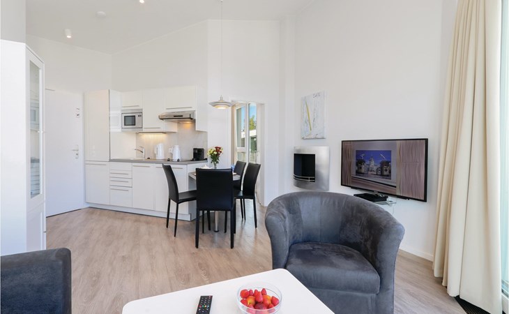 Breng je vakantie door in dit comfortabele penthouse in het vakantieresort BeachBay aan de Priwall in Lübeck Travemünde. Het vakantieappartement in een duinvilla ligt op een rustige locatie tussen strandgras en aangelegde zandduinen achter de promenadevilla's.