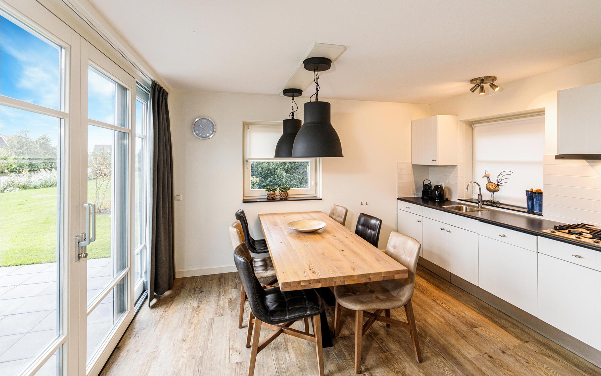 Deze Grote Wiedenwoning ligt vlakbij natuurgebied de Weerribben in een rustig en ruim opgezet vakantiepark in Giethoorn. De begane grond heeft een sfeervolle woonkamer met open keuken, een slaapkamer met badkamer en apart toilet. De andere twee slaapkamers en een extra badkamer bevinden zich op de eerste verdieping. Het huis heeft een eigen aanlegsteiger met zwemtrap. Zo kun je vanuit je tuin een verfrissende duik in het water nemen.