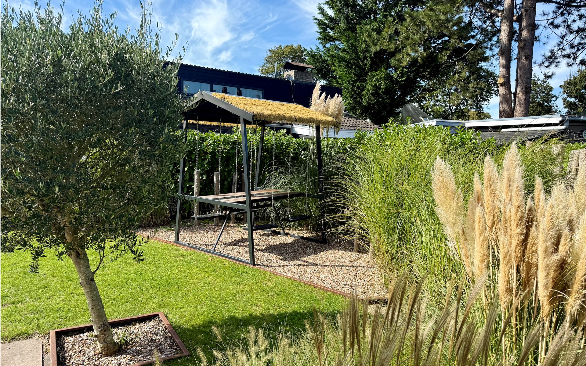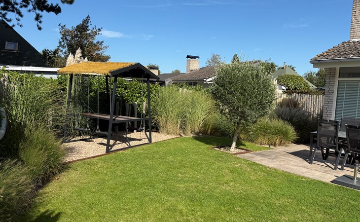 Via de terrasdeur aan de zuidzijde betreedt u de ruime, verzorgde tuin. Deze is volledig omheind en biedt een veilige plek voor spelende kinderen. Hier vindt u een loungebank, een grote ronde parasol, een buitenzitje en een schommelbank met gegarandeerde ontspanning. Op warme zomerdagen biedt de buitendouche heerlijke verkoeling, terwijl u ’s avonds nog lang kunt natafelen in de rustige buitenlucht. Voor het huis is parkeergelegenheid voor één grote of twee kleinere auto’s. Een bijzonder pluspunt: Toekomst 24 ligt direct naast Toekomst 23. Ideaal wanneer u met twee gezinnen reist en toch ieder uw eigen ruimte wilt behouden.