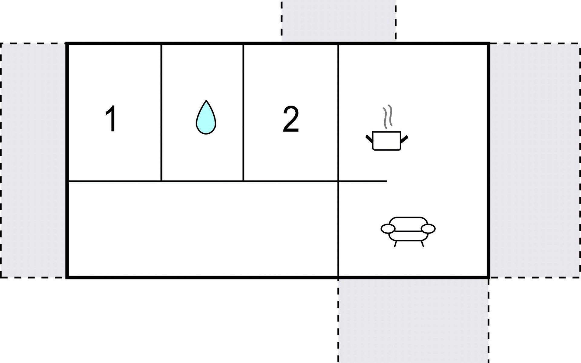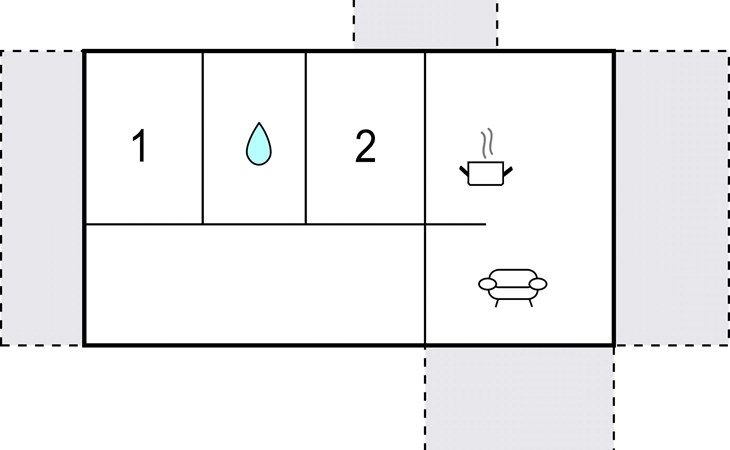De woonkamer en slaapkamer hebben houten vloeren, de rest van de kamers hebben tegelvloeren. De afstand tot het buurhuis is ongeveer 5 m, er is een beschermende omheining tussen de huizen zodat de privacy wordt beschermd. Het andere gebouw wordt het hele jaar door verhuurd.