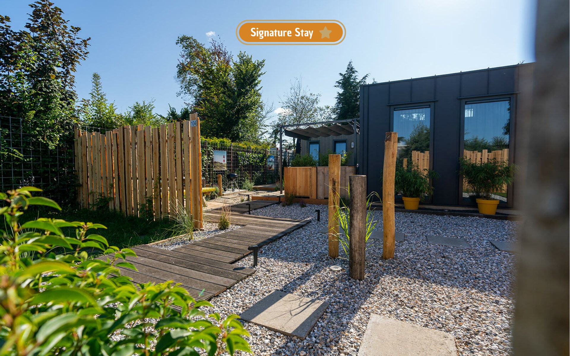 U kunt uw spullen uitladen voor de woning en daarna de auto parkeren op de parkeerplaatsen aan de voorzijde van het park. De woonkamer beschikt over vloerverwarming en grenst aan de open keuken met kookeiland. In beide slaapkamers staan dubbele boxspring bedden van 160 x 200 cm. Elk van deze slaapkamers beschikt over een eigen gelijkvloerse douche en wastafel. Alleen het toilet met een klein fonteintje moet gemeenschappelijk gebruikt worden.