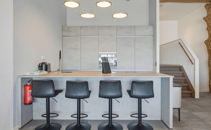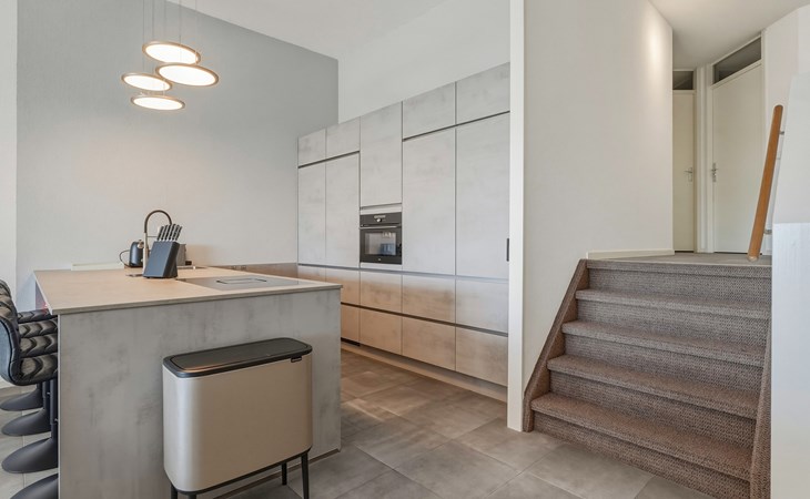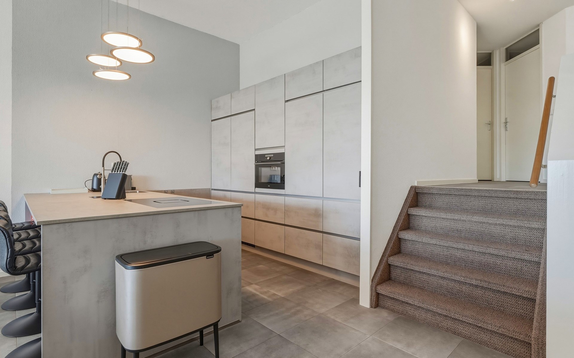 . Luxe keuken met eetbar, inductie kookplaat, koelkast, vaatwasser, combi-magnetron en Nespresso apparaat