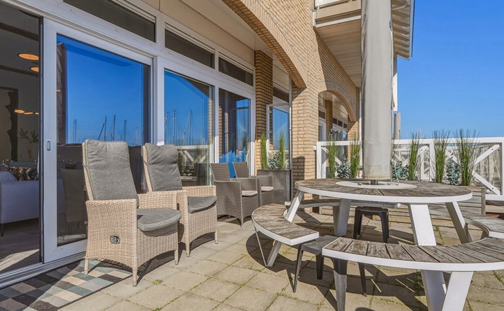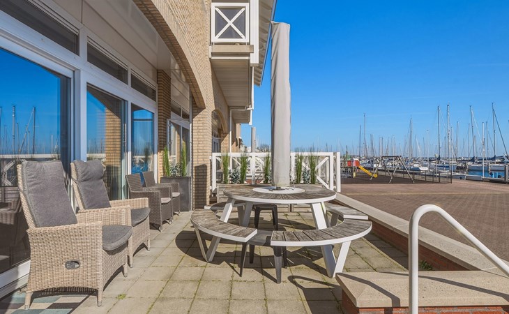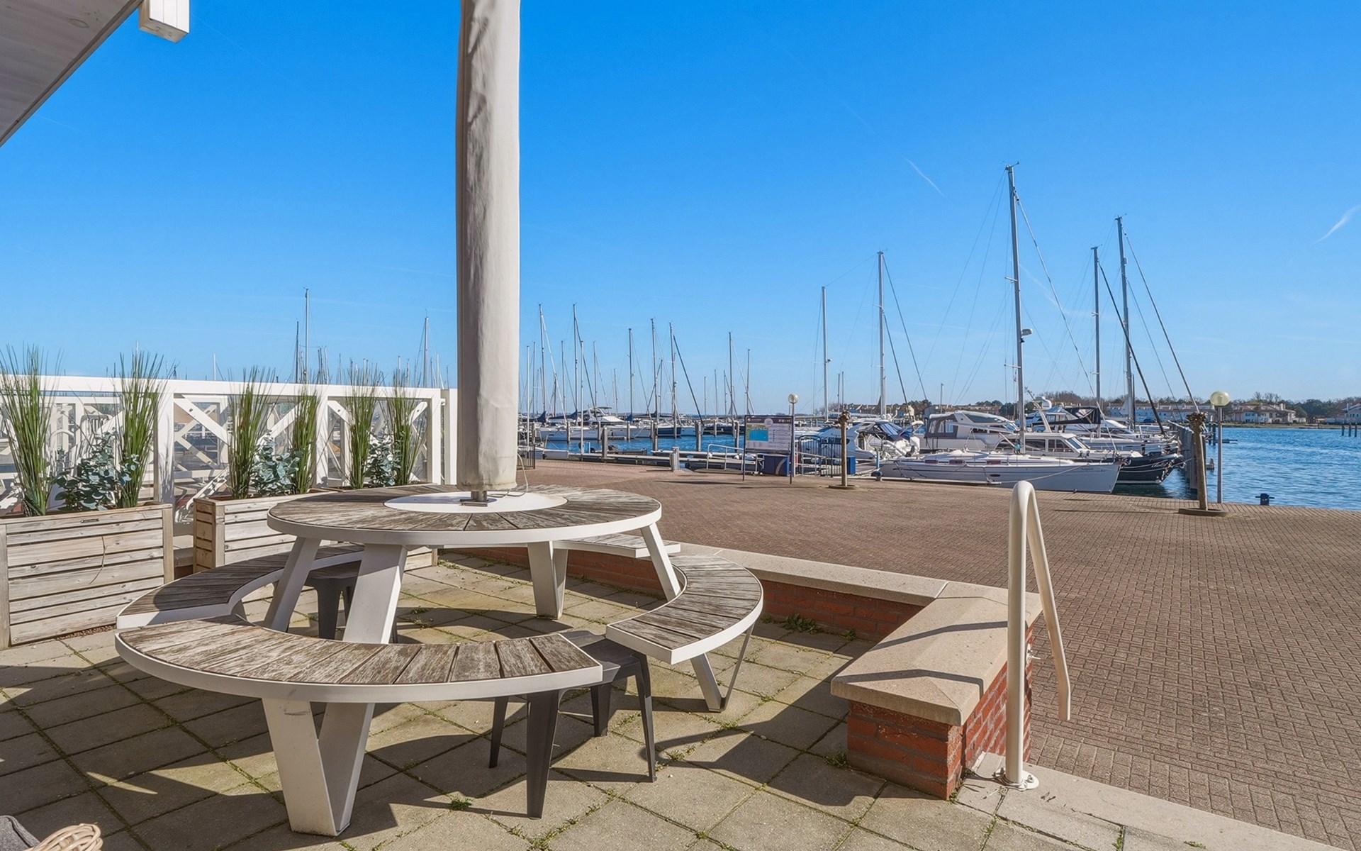 Heeft u altijd al eens wakker willen worden op één van de mooiste plekken aan de Grevelingen met de Noordzee in uw achtertuin? Wanneer u dit appartement inloopt geniet u van het mooiste uitzicht dat er is. De jachthaven ligt op 10 meter afstand van uw terras wat voorzien is van luxe tuinmeubilair en zonnescherm. Op de bank met een heerlijk glaasje wijn kijken naar al het moois op het water van de haven, de jachten en zeilschepen die aan u voorbij glijden.