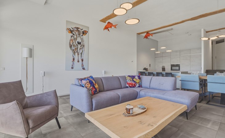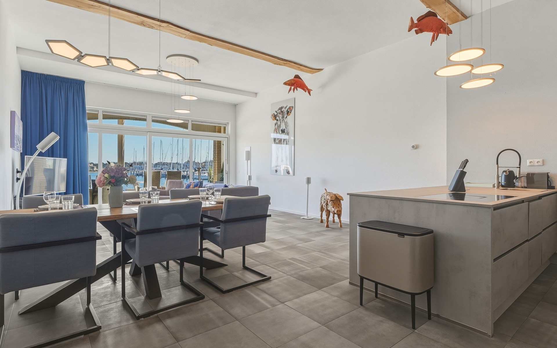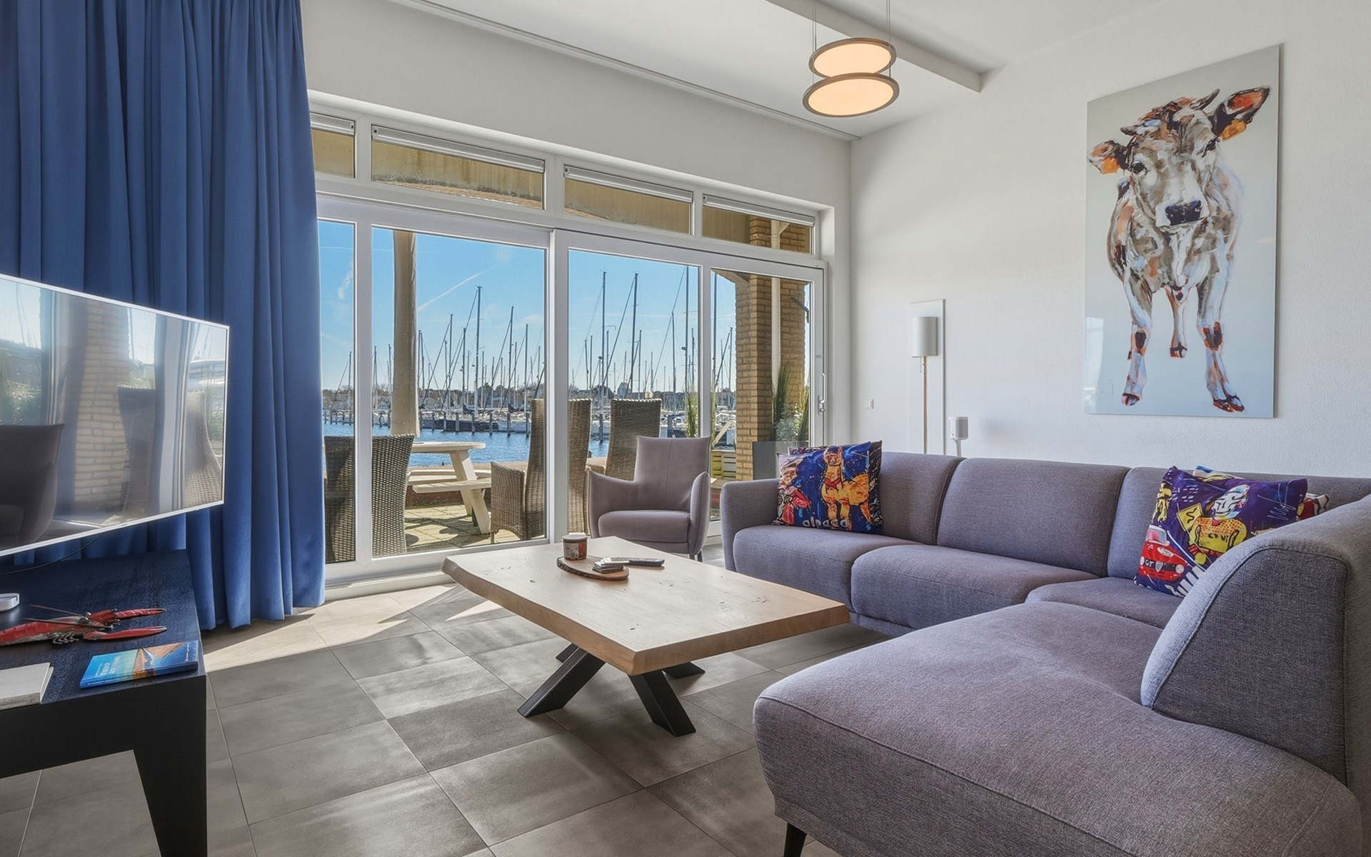 Prachtig aan de jachthaven Marina Port Zélande gelegen appartement voor 6 personen met 3 slaapkamers en een badkamer met ligbad, douche en toilet. Televisie met Sonos Dolby Surround, De luxe keuken is uitgerust met een lekkere zitbar, Vanuit de woonkamer mooi uitzicht op de haven . Direct gelegen aan de wandel boulevard.e De woonkamer heeft een comfortabel bankstel en een ruime eethoek.