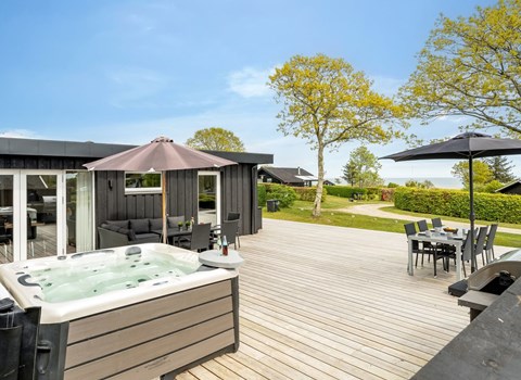 Modern, luxe huis met Fins houten bad en bubbelbad in een prachtige omgeving.