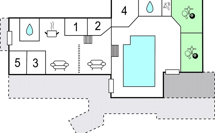 Een echt interessant vakantiehuis. Bent u graag actief, zwemt u graag in het zwembad, dan is dit huis de perfecte keuze. In de grote activiteitenruimte vindt u een biljart, tafelvoetbal, tafeltennis en darts. Het huis wacht op u in het grote, natuurlijke gebied van Handrup Bakker. Een groot speelveld is ook inbegrepen. Door zijn grootte en inrichting is het huis ook geschikt voor meerdere gezinnen, want het heeft een grote poolkamer waar waterratten hun plek kunnen vinden naast anderen die graag in alle rust bij elkaar zitten. Op het terras op het zuidwesten schijnt bijna de hele dag de zon. De verwarming is een milieuvriendelijke en rendabele geothermische warmtepomp. Brandhout kan worden gekocht.