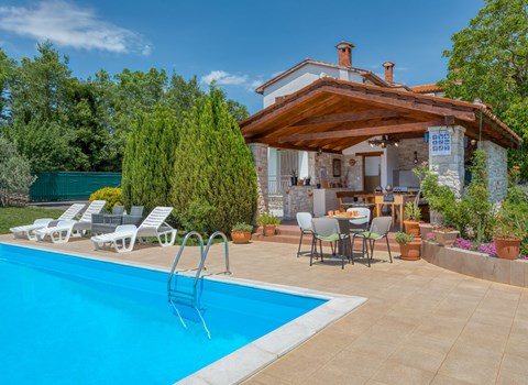Als je droomt van een ontspannen vakantie in de buurt van Porec en zijn prachtige stranden, dan is Villa Jenny misschien wel de ideale keuze voor jou! Deze prachtige villa is gebouwd in 2011 en biedt alles wat je nodig zou kunnen hebben op vakantie. De villa is geschikt voor maximaal 10 personen (inclusief baby's) en bestaat uit 2 aparte appartementen verdeeld over 2 verdiepingen. Elk appartement heeft een eigen woon-/eetkamer en een goed uitgeruste keuken. Er zijn 3 slaapkamers op de begane grond en 2 slaapkamers op de eerste verdieping. Er is een badkamer op elke verdieping. Dankzij het lichte en ruime interieur kan Villa Jenny het best worden beschreven met het adjectief "gezellig" - je voelt je hier echt thuis. Als je optimaal wilt genieten van de warme Istrische zomer, moet je een duik nemen in het uitnodigende zwembad of genieten van de zon op het terras. Villa Jenny heeft een stenen barbecue waar je regionale specialiteiten kunt bereiden terwijl de jongste gasten zich vermaken in de speeltuin.