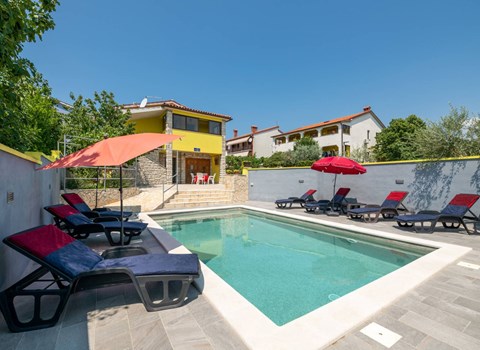 Als je droomt van een ontspannen vakantie in de buurt van Porec en zijn prachtige stranden, dan is Villa Jenny misschien wel de ideale keuze voor jou! Deze prachtige villa is gebouwd in 2011 en biedt alles wat je nodig zou kunnen hebben op vakantie. De villa is geschikt voor maximaal 10 personen (inclusief baby's) en bestaat uit 2 aparte appartementen verdeeld over 2 verdiepingen. Elk appartement heeft een eigen woon-/eetkamer en een goed uitgeruste keuken. Er zijn 3 slaapkamers op de begane grond en 2 slaapkamers op de eerste verdieping. Er is een badkamer op elke verdieping. Dankzij het lichte en ruime interieur kan Villa Jenny het best worden beschreven met het adjectief "gezellig" - je voelt je hier echt thuis. Als je optimaal wilt genieten van de warme Istrische zomer, moet je een duik nemen in het uitnodigende zwembad of genieten van de zon op het terras. Villa Jenny heeft een stenen barbecue waar je regionale specialiteiten kunt bereiden terwijl de jongste gasten zich vermaken in de speeltuin.