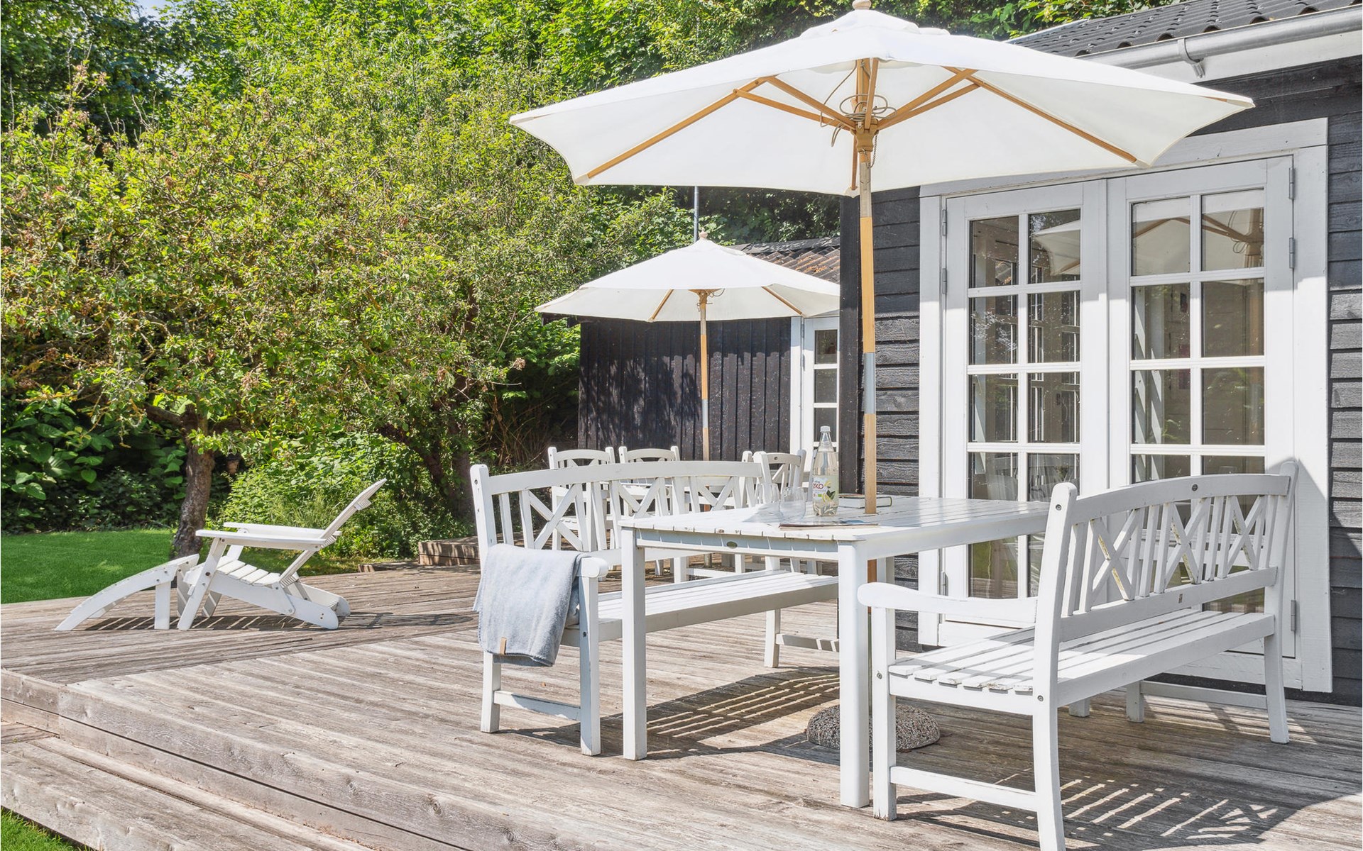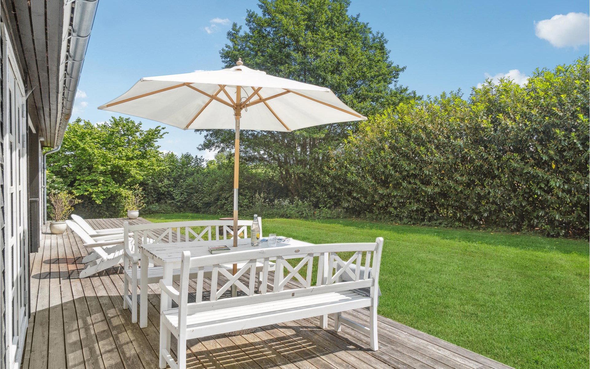 In de zomermaanden kunt u het zich gemakkelijk maken op het terras, koffie drinken en uw kinderen in de tuin zien spelen.