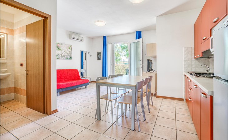 Vlakbij Caorle, verwelkomt deze compacte vakantiewoning u in een verzorgd vakantiecomplex aan zee.