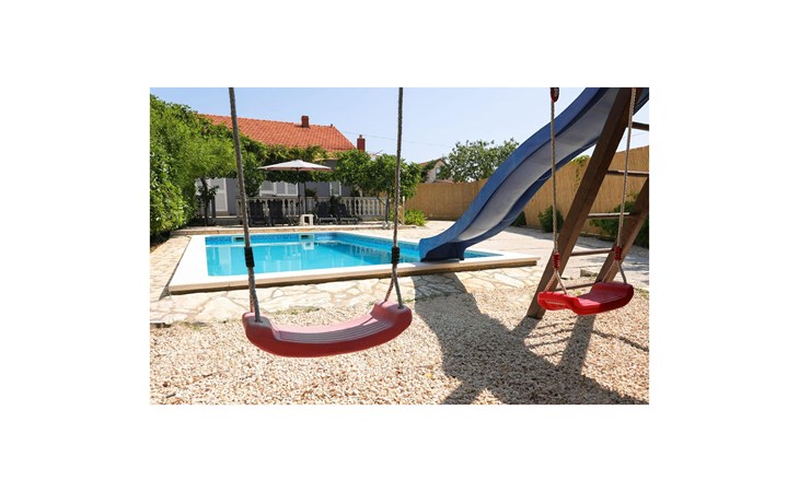 Deze mooie en functioneel ingerichte geschakelde vakantiewoning ligt in het kleine en rustige dorpje Konjevrate. In de warme zomermaanden kun je je verfrissen in het zwembad. Er is ook een barbecue waar je heerlijke maaltijden kunt bereiden terwijl je kinderen zich vermaken op de schommel of glijbaan. Mis een uitstapje naar het nabijgelegen Nationaal Park Krka niet. Ook een bezoek waard is de stad ibenik, op ongeveer 17 kilometer afstand, met zijn vele historische en culturele bezienswaardigheden en UNESCO Werelderfgoed (Kathedraal van Sv. Jakov).