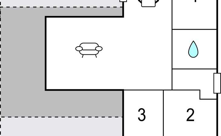 De panoramische ramen van de woonkamer laten veel licht binnen, en de keuken staat er open voor. Het huis is ingericht in een aangename, Scandinavische stijl met drie comfortabele slaapkamers en een goede badkamer met vloerverwarming en douche.