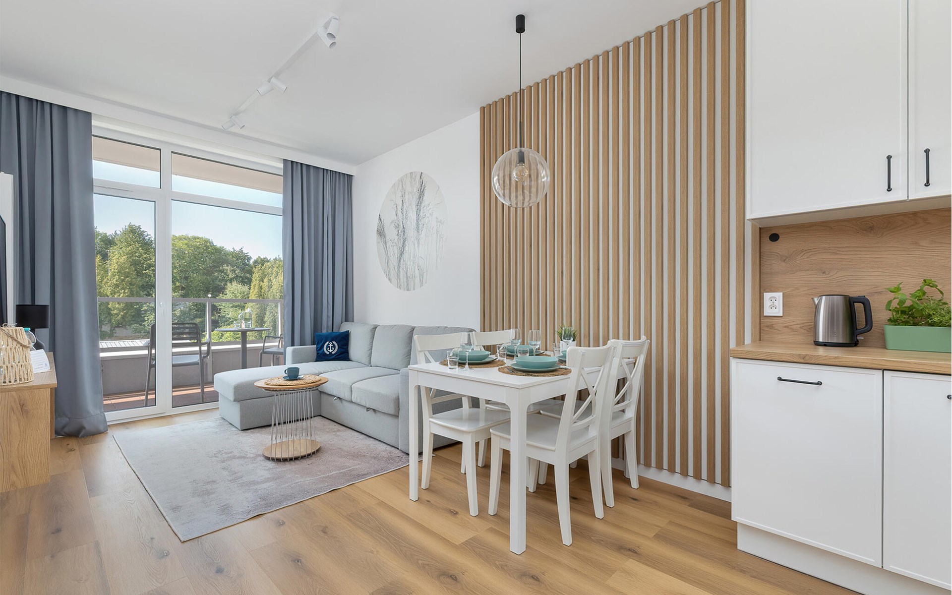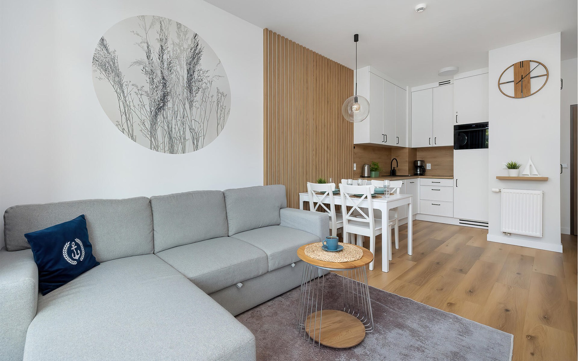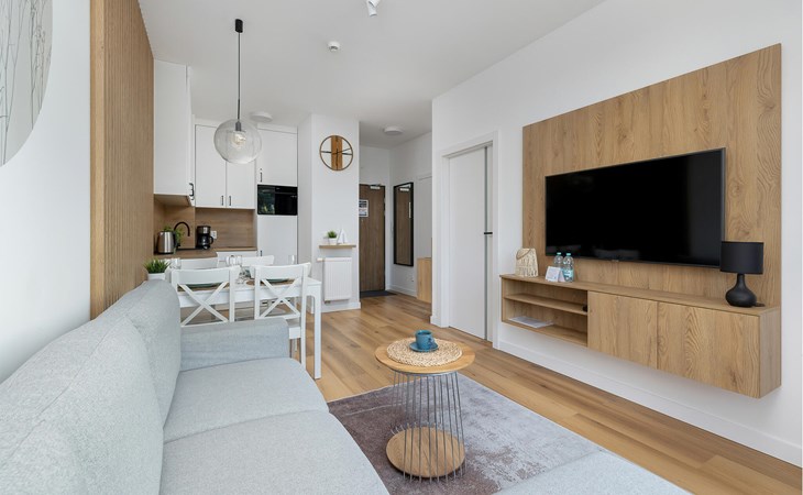 Breng je volgende vakantie door in dit stijlvolle vakantieappartement in Ustronie Morskie. Hier wacht je niet alleen modern comfort, maar ook een centrale ligging dicht bij het strand. De vakantiewoning is licht en modern en biedt ruimte voor koppels of een klein gezin. De woonkamer met gezellige bank en tv nodigt uit tot ontspannen avonden, terwijl de open keuken met eethoek ideaal is uitgerust voor gezamenlijke maaltijden. Geniet van je ontbijt op het balkon met uitzicht op het groen. De smaakvolle inrichting creëert een warme en uitnodigende sfeer.
