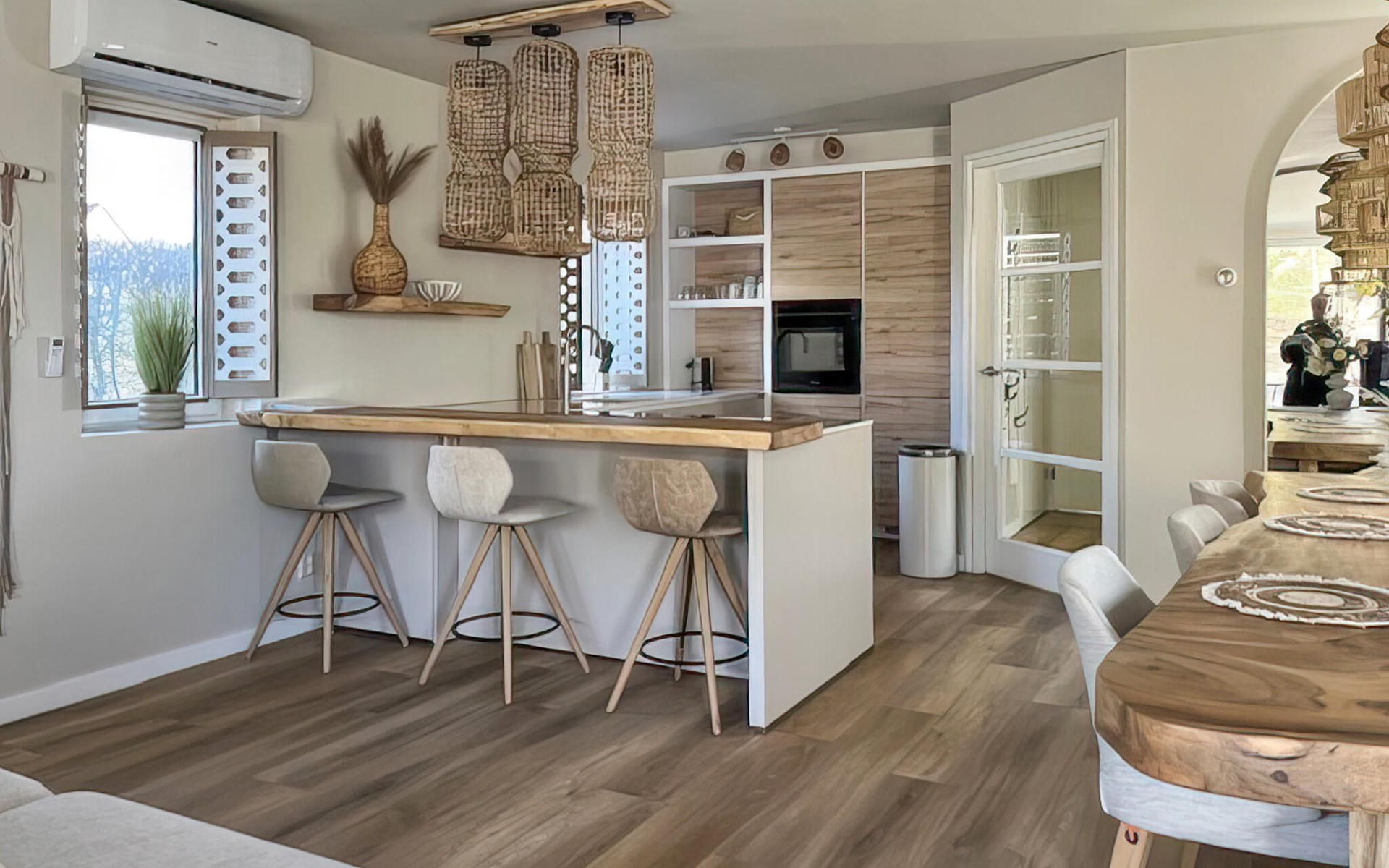 Je mooie vakantiehuis op Bungalowpark Emlandermeer biedt jou en je gezin alle ruimte om te ontspannen. De hele accommodatie is smaakvol ingericht in een stijlvol Ibiza-design en de serre biedt je een heerlijke ruimte om met het hele gezin samen te komen om te eten, spelen en ontspannen. Maak het jezelf gemakkelijk in de grote woonkamer en breng hier ontspannen avonden door met een spannende film of een goed boek. Kook samen op de centraal geplaatste kookplaat in de volledig uitgeruste keuken.