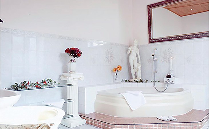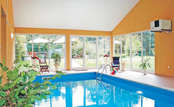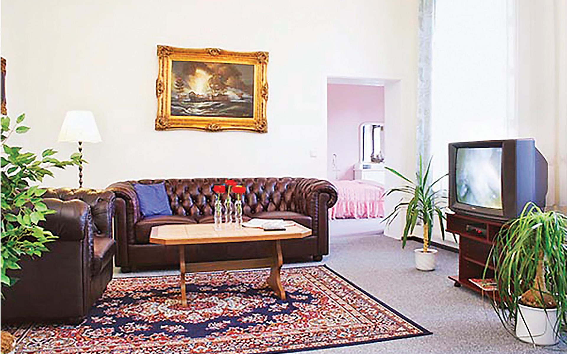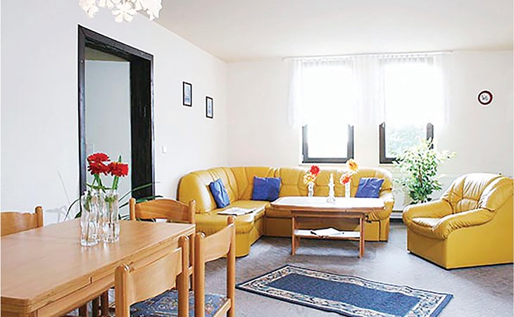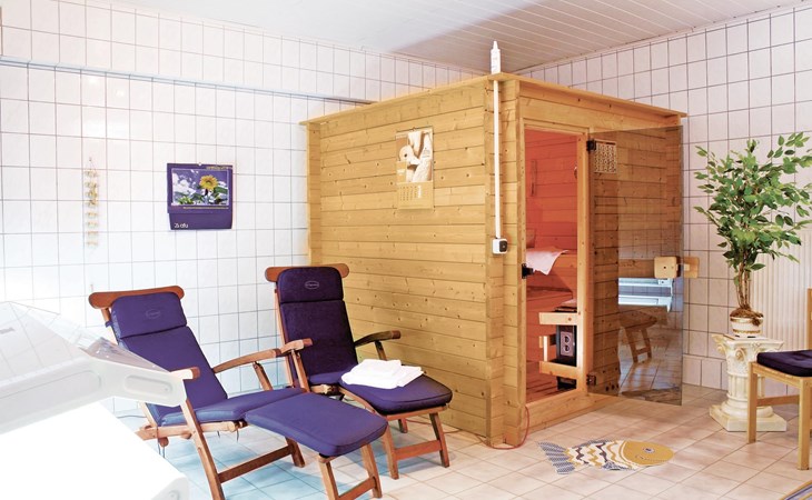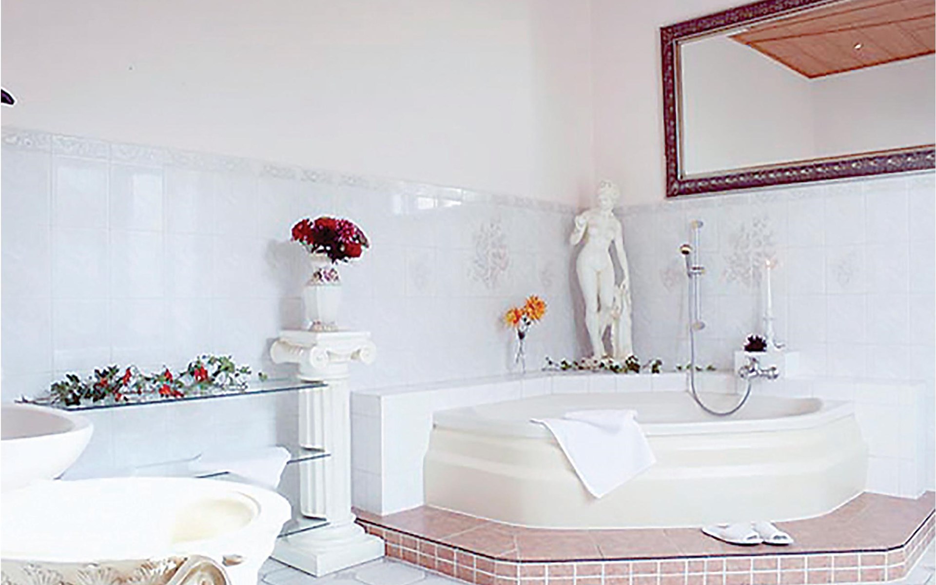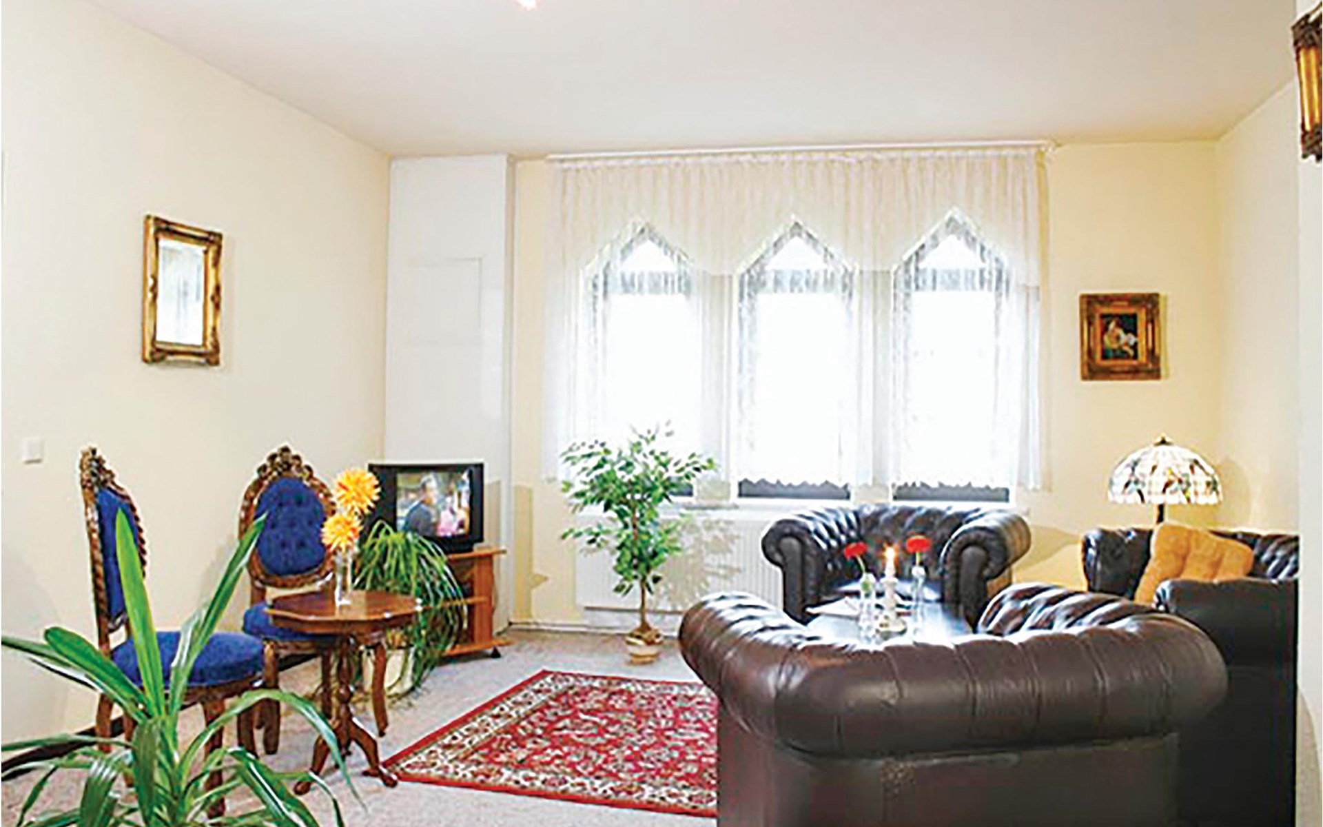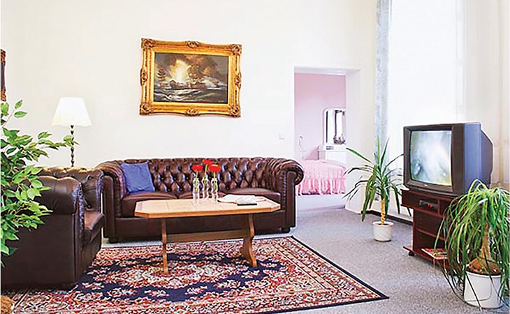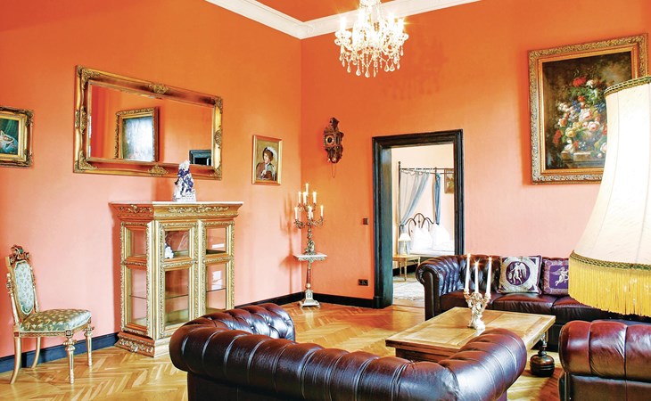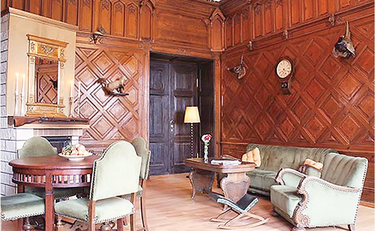 Het terras en balkon van het kasteel kijken uit over een meertje. Tot 20 personen kunnen worden ondergebracht in 7 gezellig ingerichte appartementen, elk met een eigen keuken of kitchenette. Het kasteel is daarom ideaal voor groepsreizen of vakanties met een groot gezin. Er is een grote eetzaal op de benedenverdieping, die gebruikt kan worden voor feesten of vergaderingen. In de kelder is een sauna, solarium en fitnessruimte. Er is ook een biljartkamer, een groot overdekt terras en een verwarmd/overdekt zwembad van 32 m² op het terrein. Hier kun je genieten van je vakantie met de hele familie.