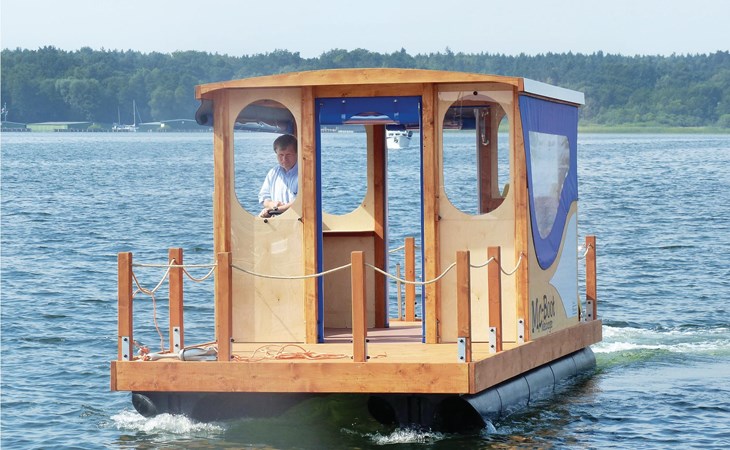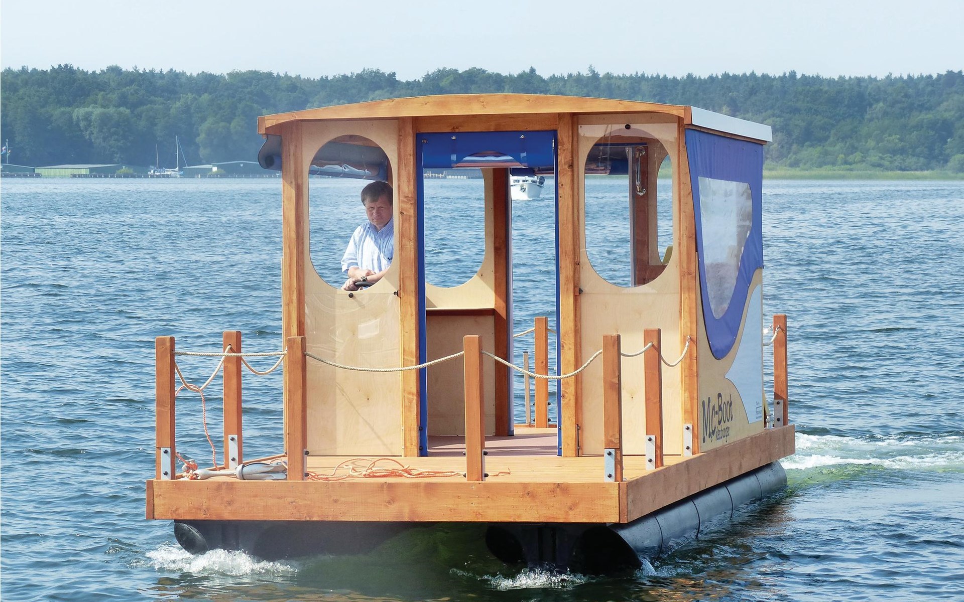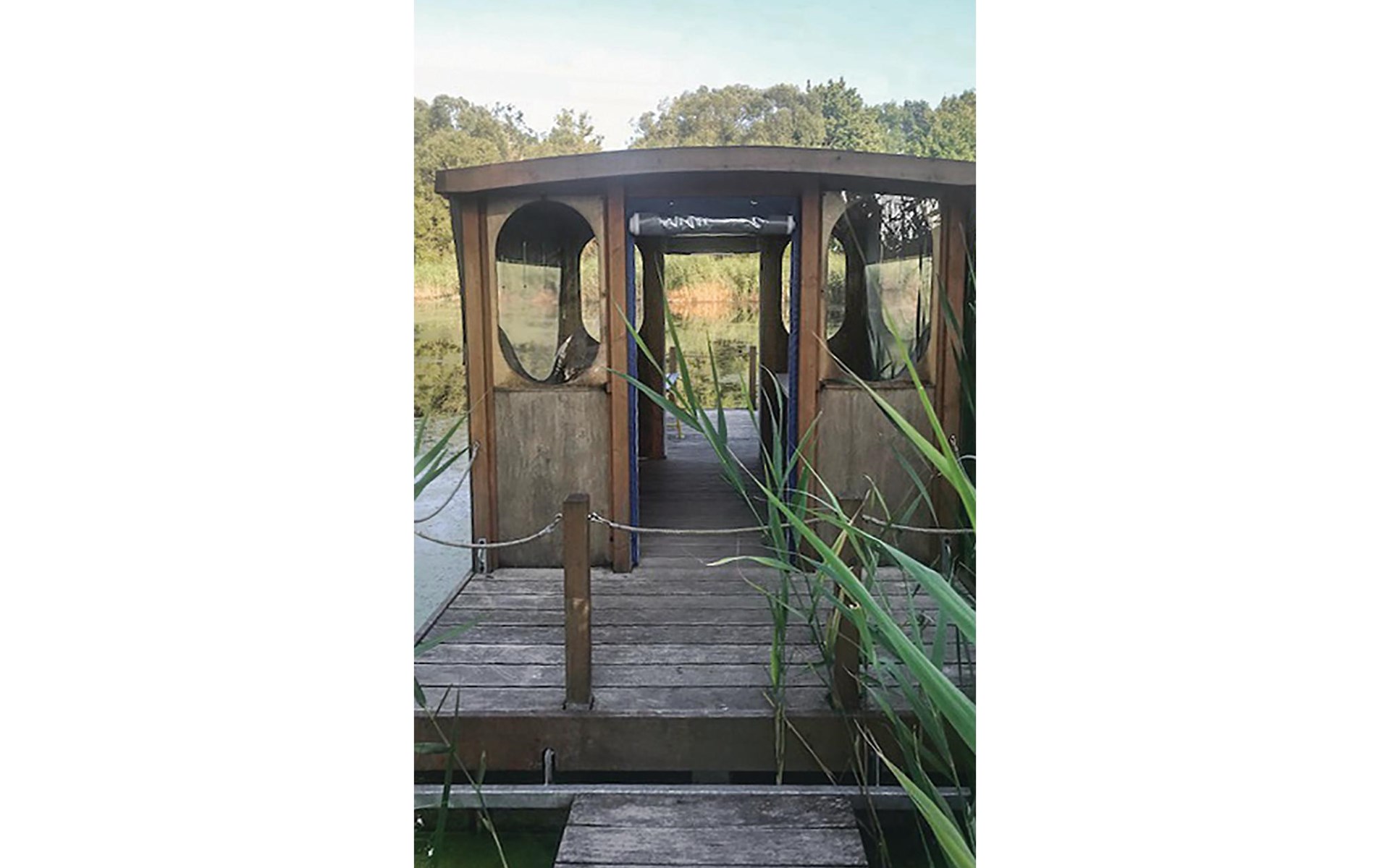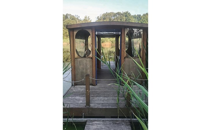 Op de kasteelvijver is een kleine catamaran beschikbaar. Deze is stevig verankerd en biedt plaats aan maximaal 8 personen, die hier op gezellig tuinmeubilair hun koffie kunnen drinken of gewoon van de zon kunnen genieten.