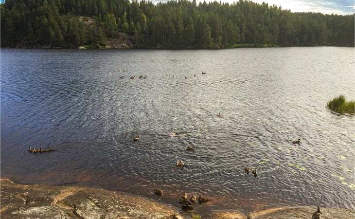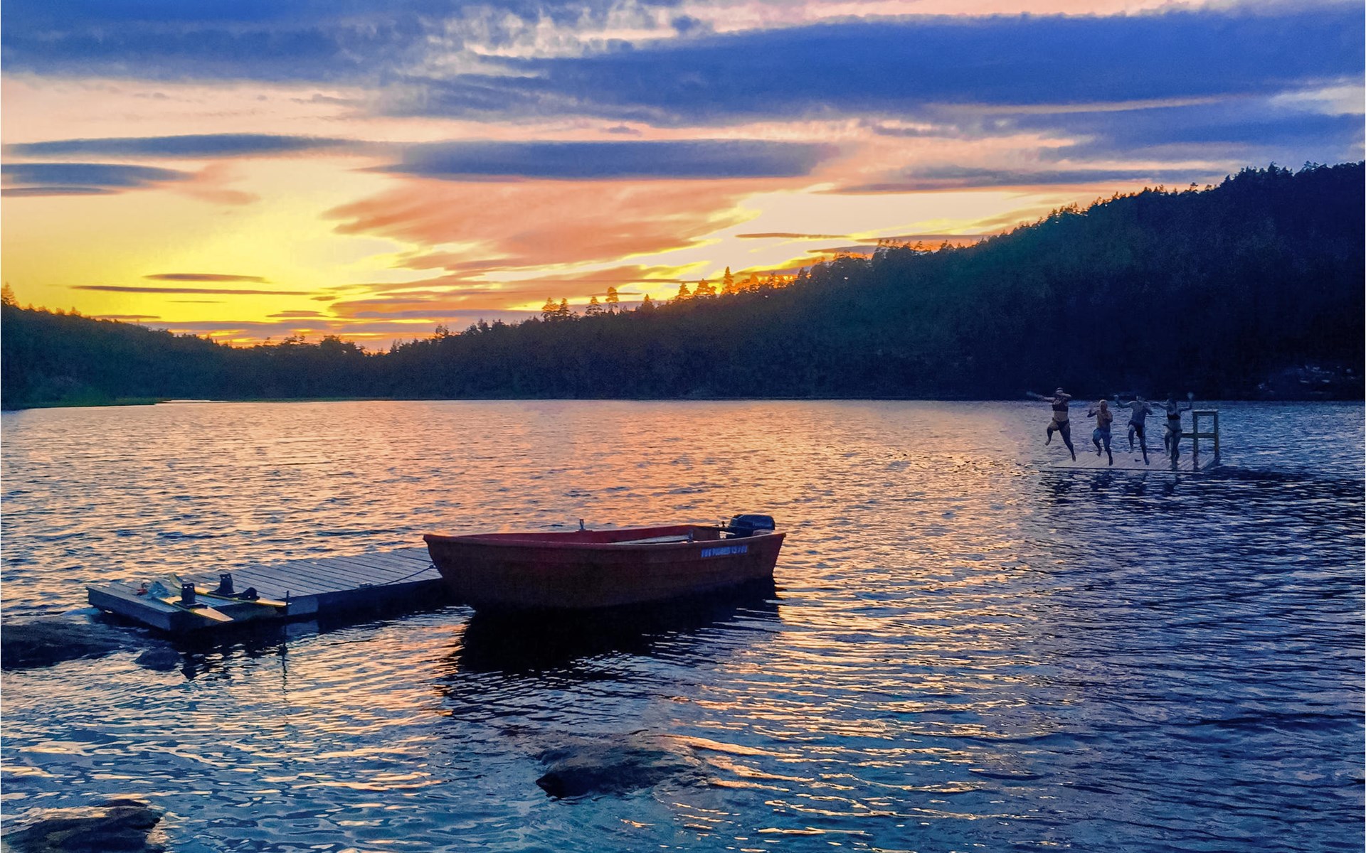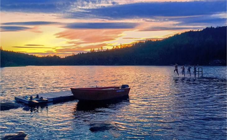 Geniet van de indrukwekkende natuur direct voor de deur. Zwem in het heldere water van het meer of werp een hengel uit en vang je eigen avondeten. Huur een roeiboot, kano of kajak als je de omgeving vanaf het water wilt verkennen. Het ruime terras nodigt je uit om te vertoeven. Geniet van het uitzicht op het water en sluit de dag af in een vredige omgeving. Voor de jongere vakantiegasten is er een schommel beschikbaar.