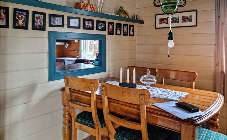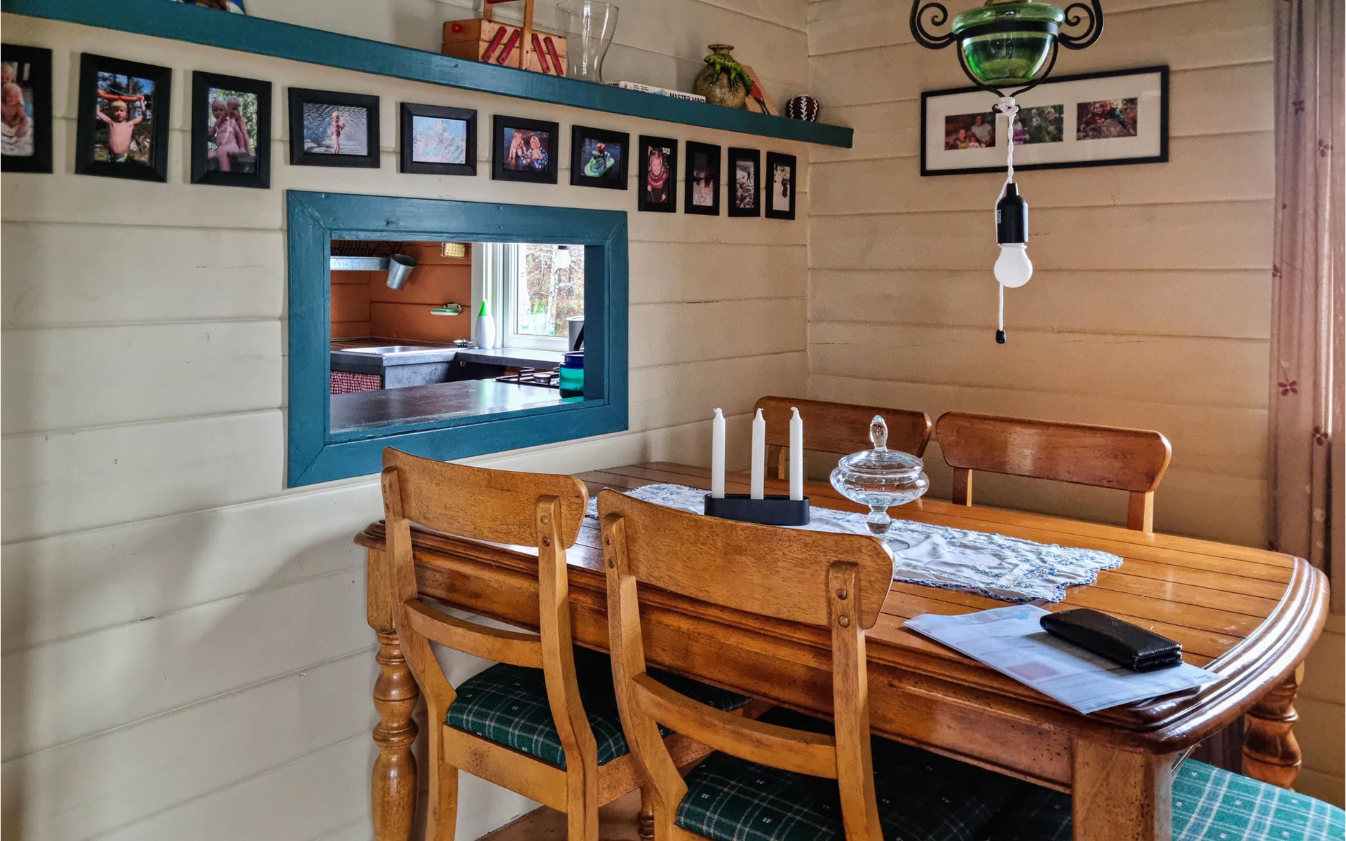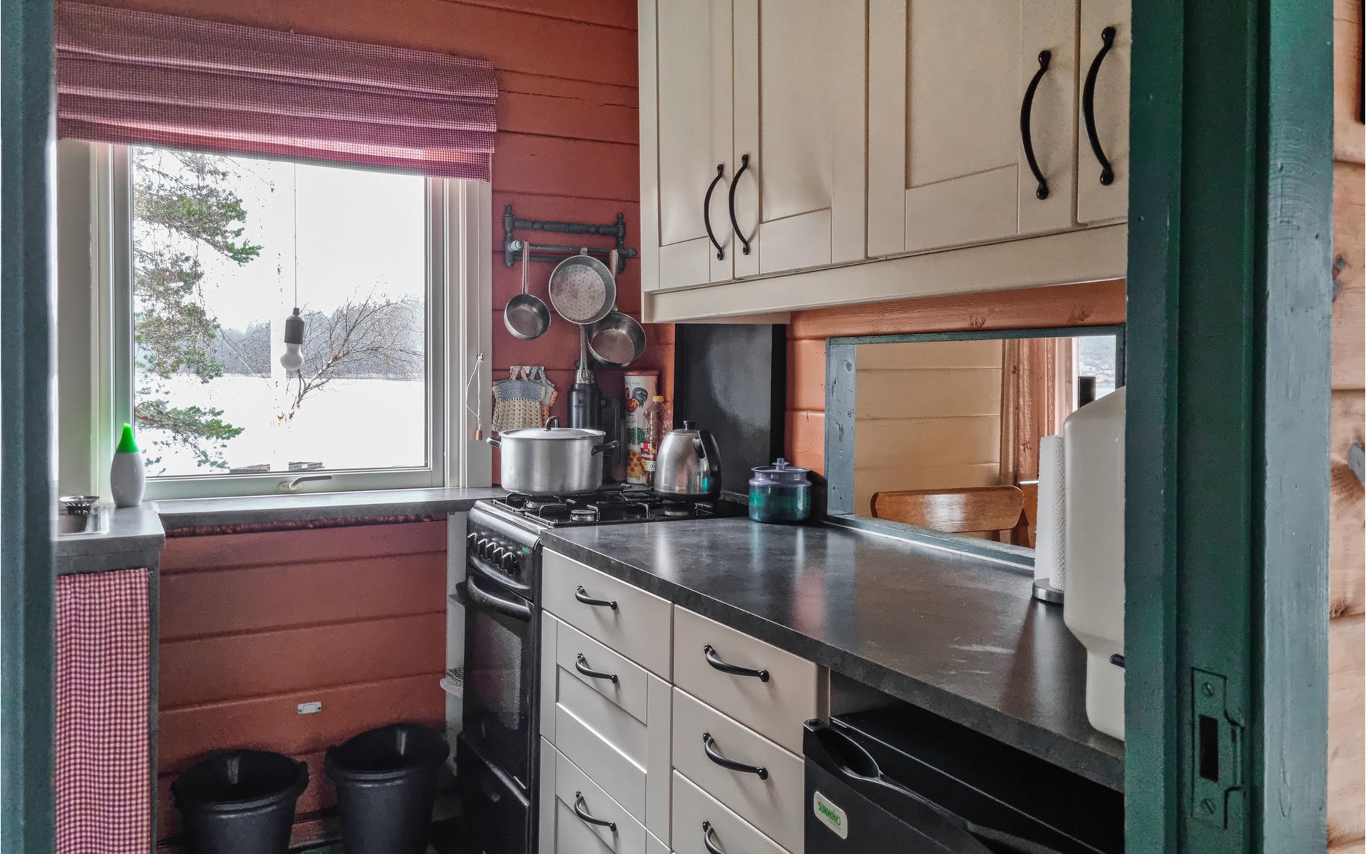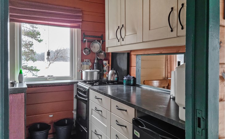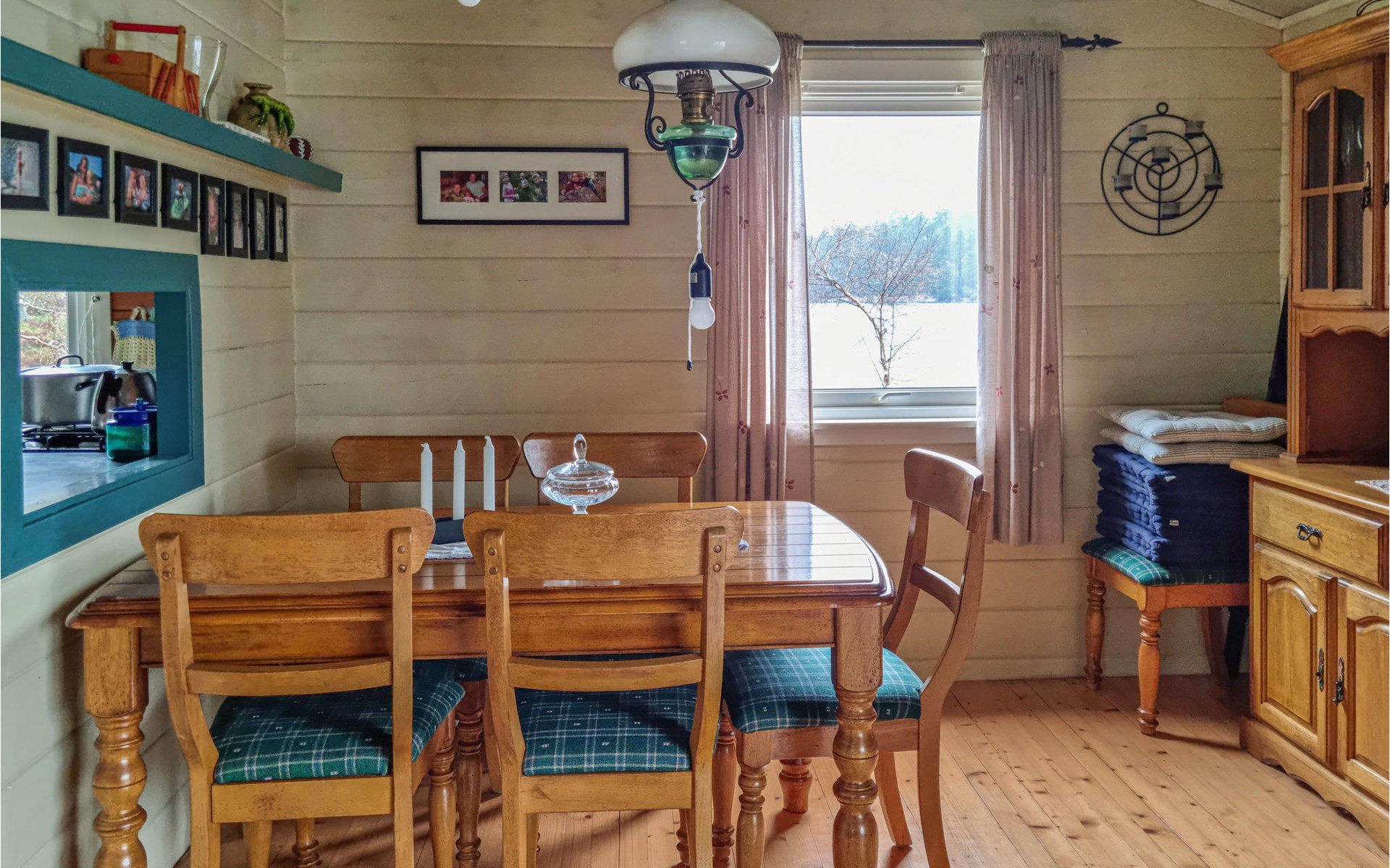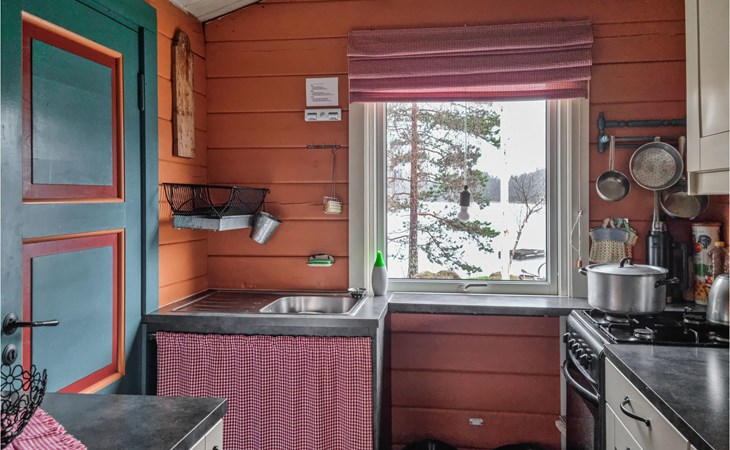 Welkom in je vakantiehuis met een fantastische ligging direct aan het meer. Hier kun je genieten van de rust en stilte en een ontspannen vakantie doorbrengen midden in de natuur. Zonder elektriciteit of stromend water biedt dit vakantiehuis een authentieke ervaring weg van de drukte. Maak het jezelf gemakkelijk in de gezellige woonkamer. De rustieke houten muren geven de kamer een warme sfeer, terwijl de houtkachel voor gezellige warmte zorgt. Maak gebruik van de eenvoudige keukenfaciliteiten en bereid je maaltijden in een ontspannen omgeving.