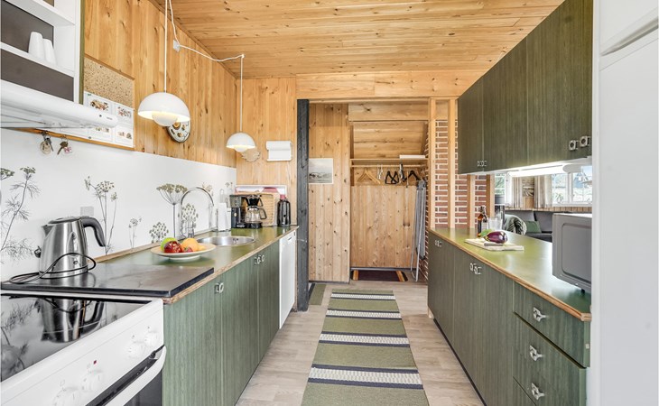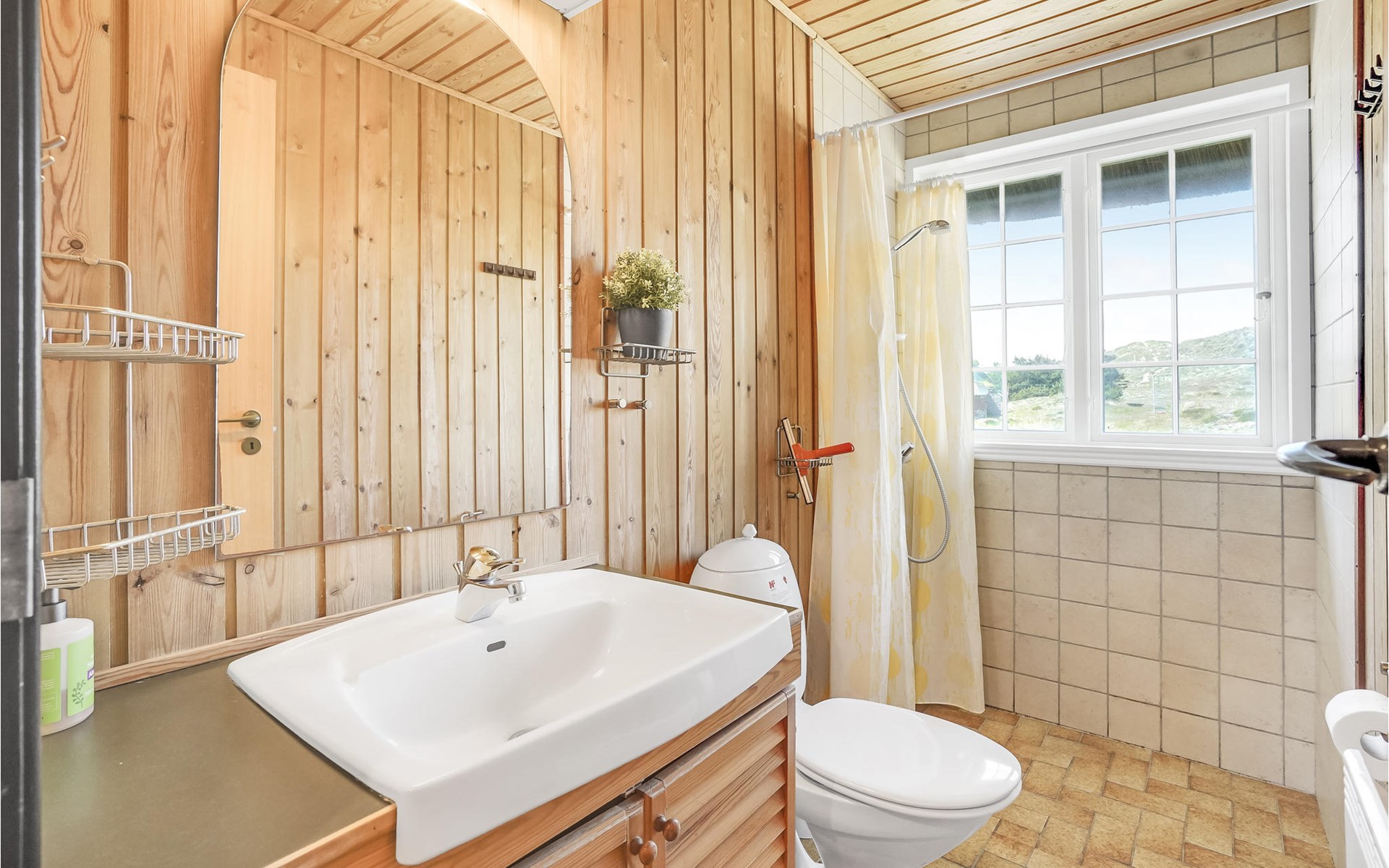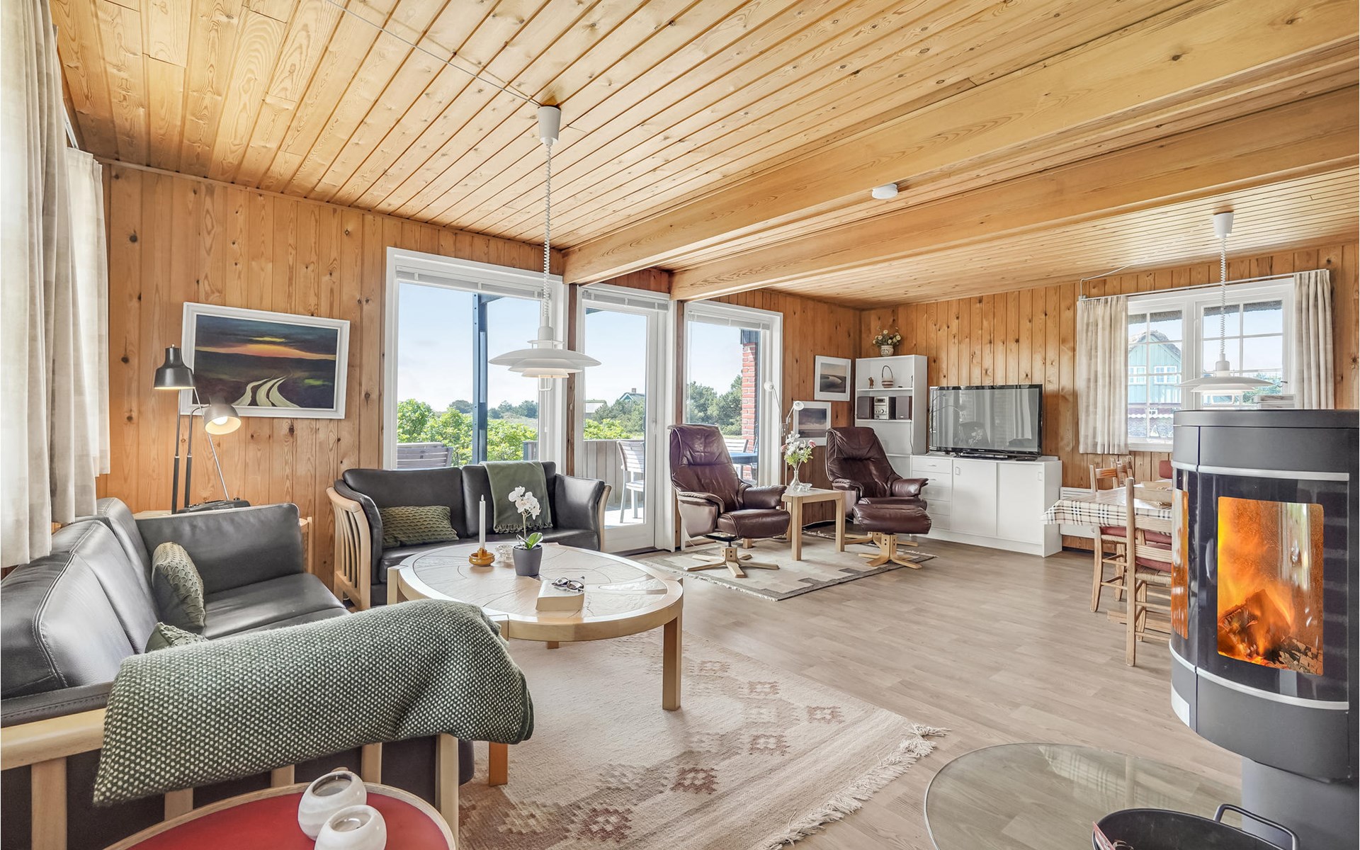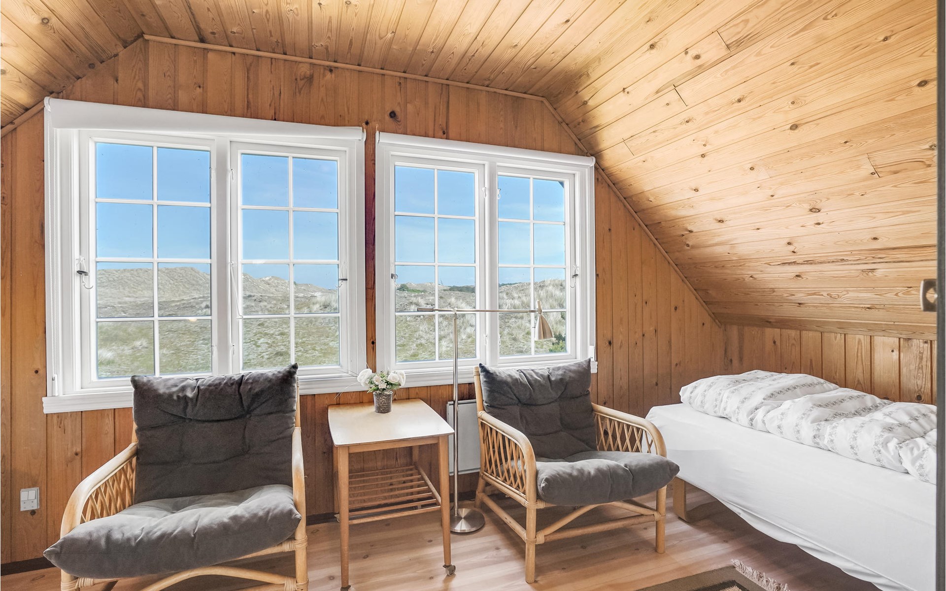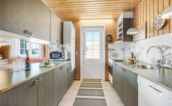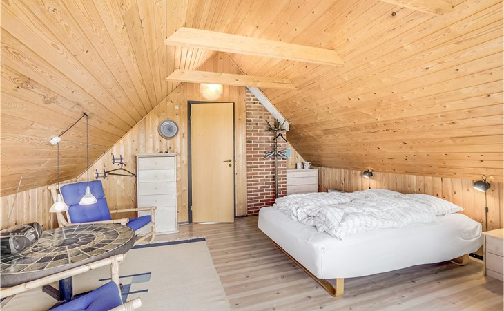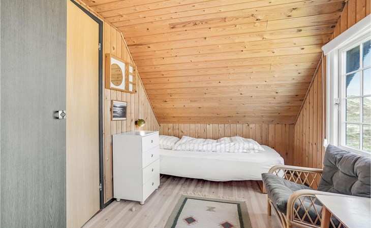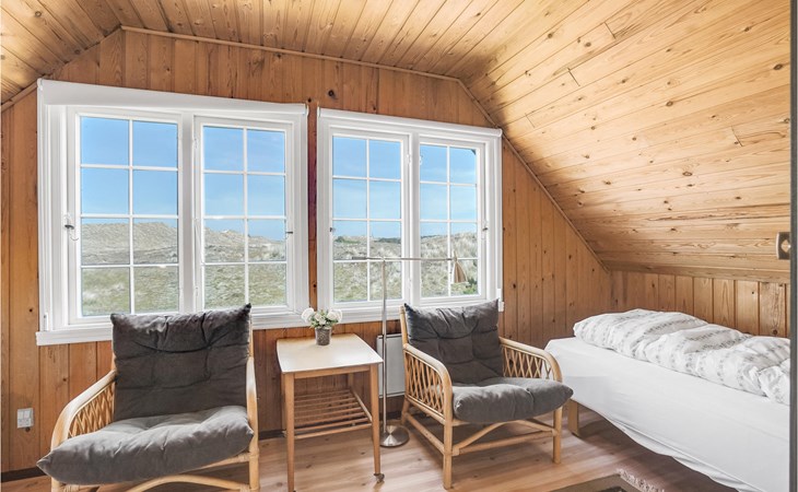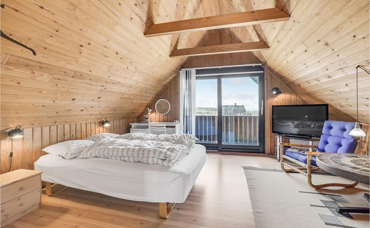 U woont niet ver van het strand in Sønderho. Vanaf het balkon op de 1e verdieping heeft u een prachtig uitzicht op de Noordzee en kunt u bij eb de zandbanken zien verschijnen. Er is een open keuken-woonkamer van waaruit de trap naar de eerste verdieping leidt. Daar bevinden zich twee van de drie slaapkamers. De derde slaapkamer en de badkamer bevinden zich op de begane grond.