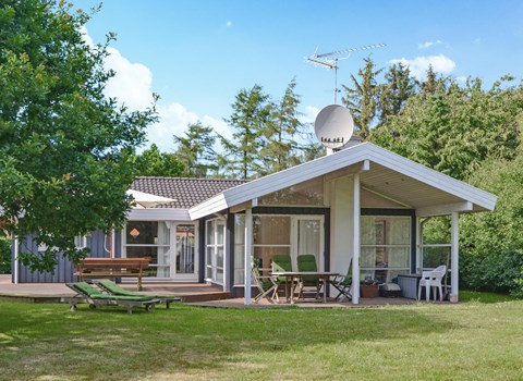 Dit gezellige en luxe vakantiehuis ligt op een bebost perceel vlakbij het prachtige strand van Slette.