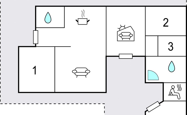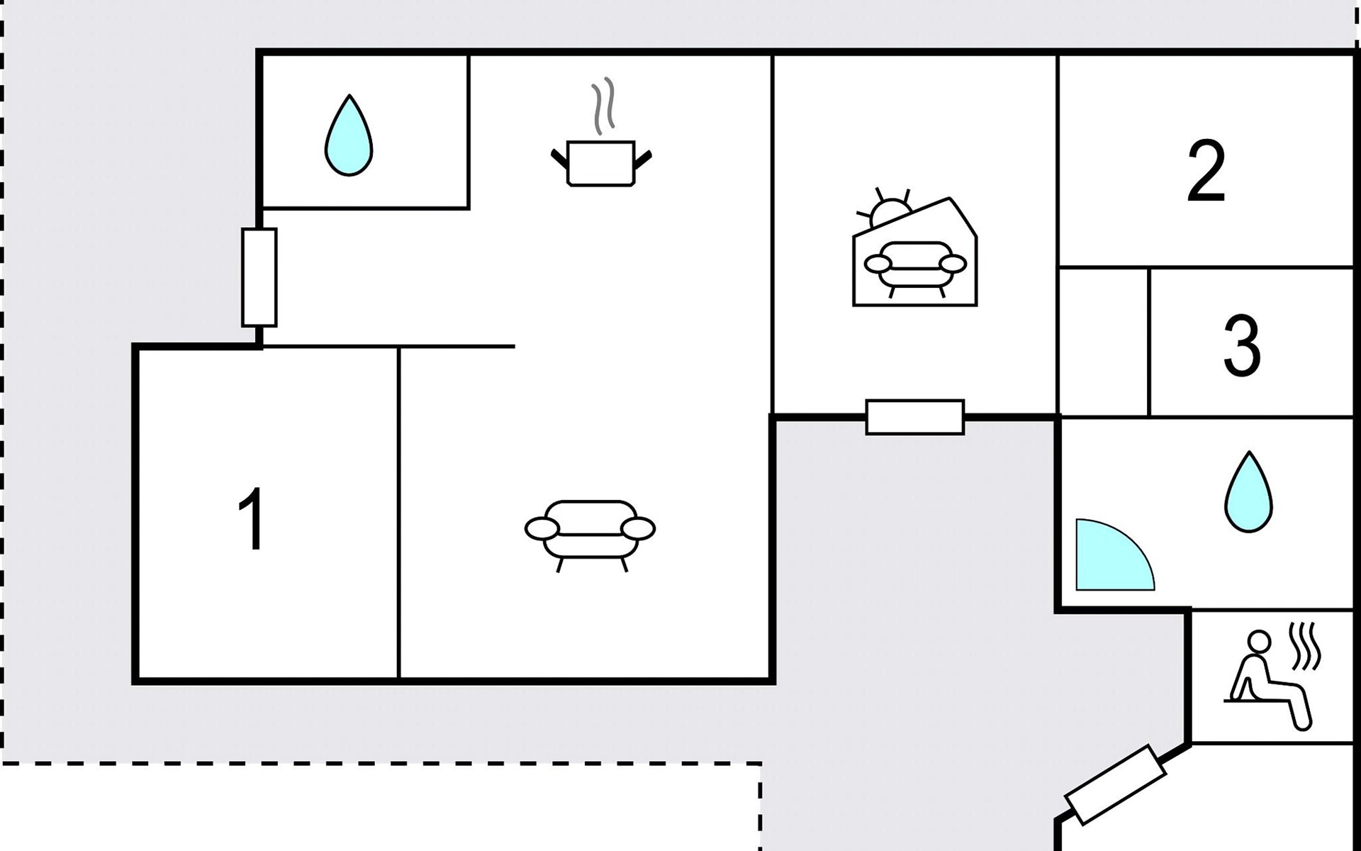 Het huis is praktisch ingedeeld. In het hoofdhuis vind je een woonkamer en keuken, een goede slaapkamer met een tweepersoonsbed en een badkamer. Vanuit de keuken en eetkamer heb je toegang tot een zeer gezellige serre, die verwarmd wordt met vloerverwarming. Hier kunnen de deuren helemaal open, waardoor je het gevoel hebt op het terras te zitten, maar toch beschut bent tegen de wind. Echt een goede uitvalsbasis voor heerlijke avonden in zomer en winter. Vanuit de serre heb je toegang tot het andere deel van het huis. Hier vind je 2 slaapkamers - een met een tweepersoonsbed en de andere met een 3/4 bed en een eenpersoons stapelbed erboven - evenals een heerlijke grote badkamer met toegang tot de spa en sauna. Vanuit de serre heb je toegang tot het mooie omheinde terras waar je kunt genieten van een gezellige barbecue. In het schuurtje vind je hengels die je gratis kunt gebruiken. Als je vis hebt gevangen voor het avondeten, kun je deze schoonmaken onder het overdekte gedeelte van de buitenkeuken met warm en koud water.