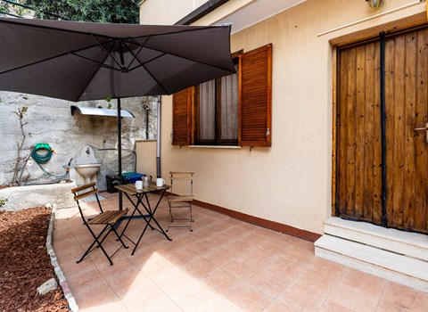 Kleine, praktisch ingerichte vakantiewoning op de begane grond van een voormalige boerderij omgeven door een ruim natuurperceel op een prachtige locatie tussen de zee en het oude dorp Castellabate. Deze vakantiewoning is ideaal voor een stel of een gezin met een kind, en ook uw trouwe viervoeter is hier welkom. Wanneer u 's avonds terugkomt van een excursie in de naburige heuvels of van een dag aan zee, kunt u echt ontspannen op het terras met een drankje en vervolgens buiten dineren. De mooie badplaats Santa Maria di Castellabate, op slechts een paar minuten rijden, heeft uitgestrekte vrije en uitgeruste zandstranden, een mooie boulevard direct in de stad, mooie koffiebars en uitstekende restaurants waar u de gevarieerde specialiteiten en uitstekende wijnen van de regio kunt proeven. Mis niet een bezoek aan het oude gehucht Castellabate (UNESCO Werelderfgoed), dat ongeveer 280 m boven de zeespiegel ligt en de hele baai van Santa Maria di Castellabate domineert. Dit middeleeuwse bergdorp werd voor het eerst vermeld in 1123 en is ook nu nog een labyrint van oude huizen, romantische steegjes, trappen, pleintjes met adembenemende panorama's en verborgen trattoria's of kleine barretjes. De "piazzetta", d.w.z. het dorpsplein, is de ontmoetingsplaats van zowel de inwoners van het dorp als van menig vakantieganger; ook hier kunt u genieten van een prachtig uitzicht op het omringende heuvellandschap, terwijl het weidse uitzicht op zee vanaf de Belvedere di San Costabile de toeschouwers vooral bij zonsondergang volledig in vervoering brengt. De Cilento ligt in de regio Campania, in het zuiden van Italië, tussen Paestum in het noorden, Sapri in het zuiden en de Vallo di Diano in het oosten, met ongeveer 100 km kustlijn, bergen en 200 kleine, meestal middeleeuwse dorpjes. Voor cultuurliefhebbers raden wij een bezoek aan de majestueuze tempels van Paestum aan, op ongeveer 25 km afstand. Ook bezienswaardig zijn de brede trappen met hun "scaloni" en de imposante stadspoort uit de 16e eeuw, die leiden naar de middeleeuwse oude stad van het kleine dorpje Agropoli, waar u vanaf de vestingwerken van het oude stadscentrum kunt genieten van een overweldigend uitzicht over de hele kust. In hetzelfde huis bevinden zich ook de appartementen IKC133, eveneens gelijkvloers, en IKC313 (1e verdieping), en op hetzelfde perceel IKC213. Gemeenschappelijke barbecue.