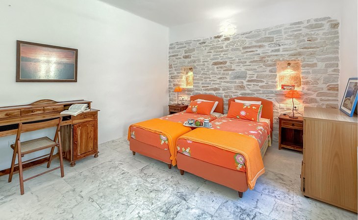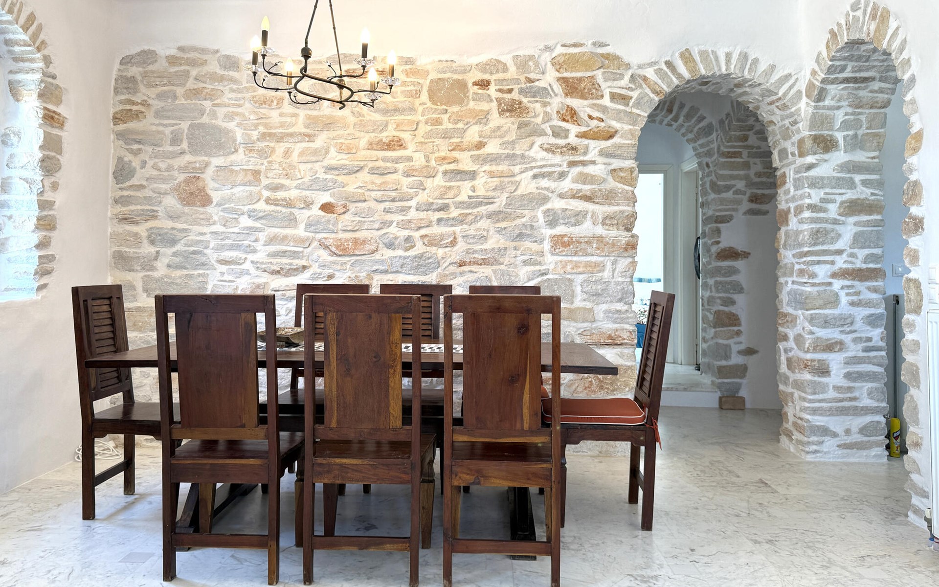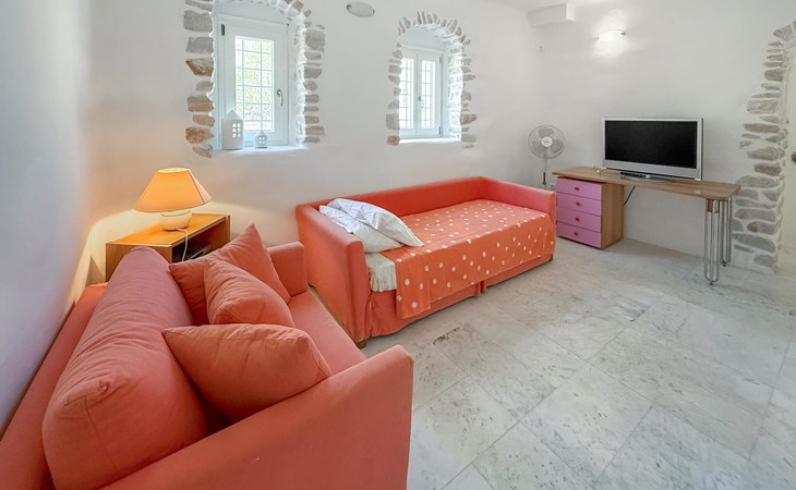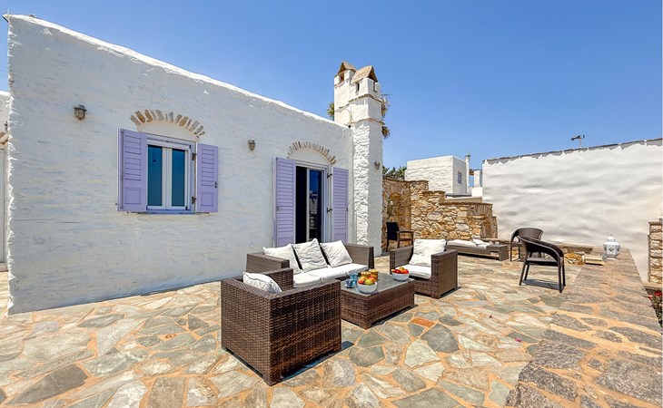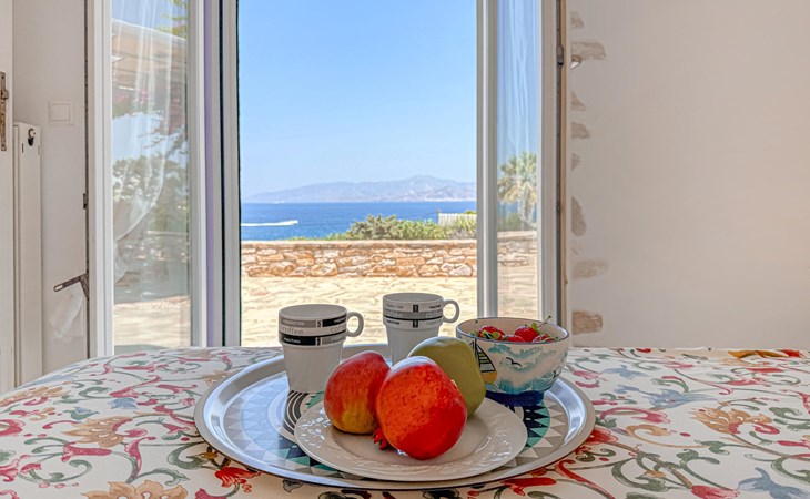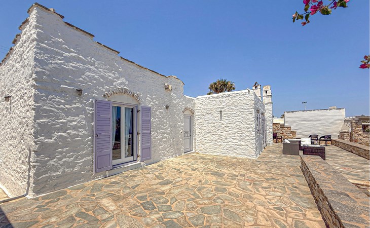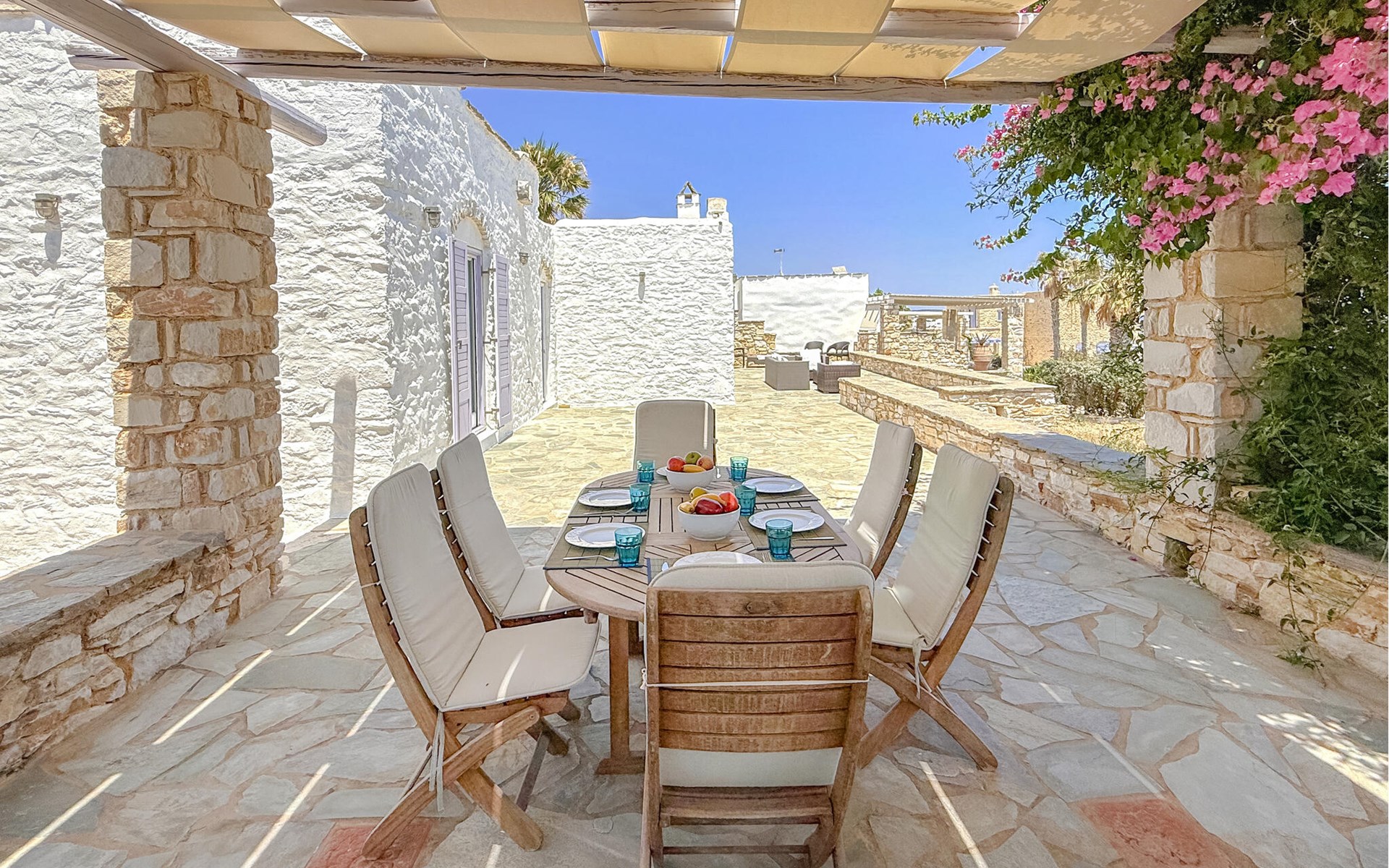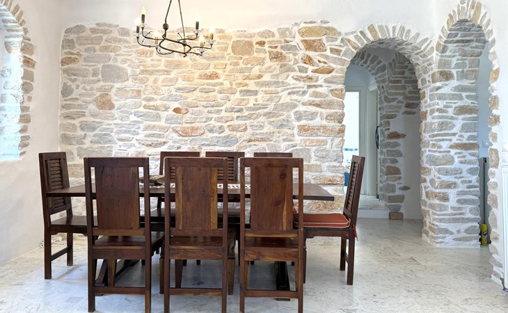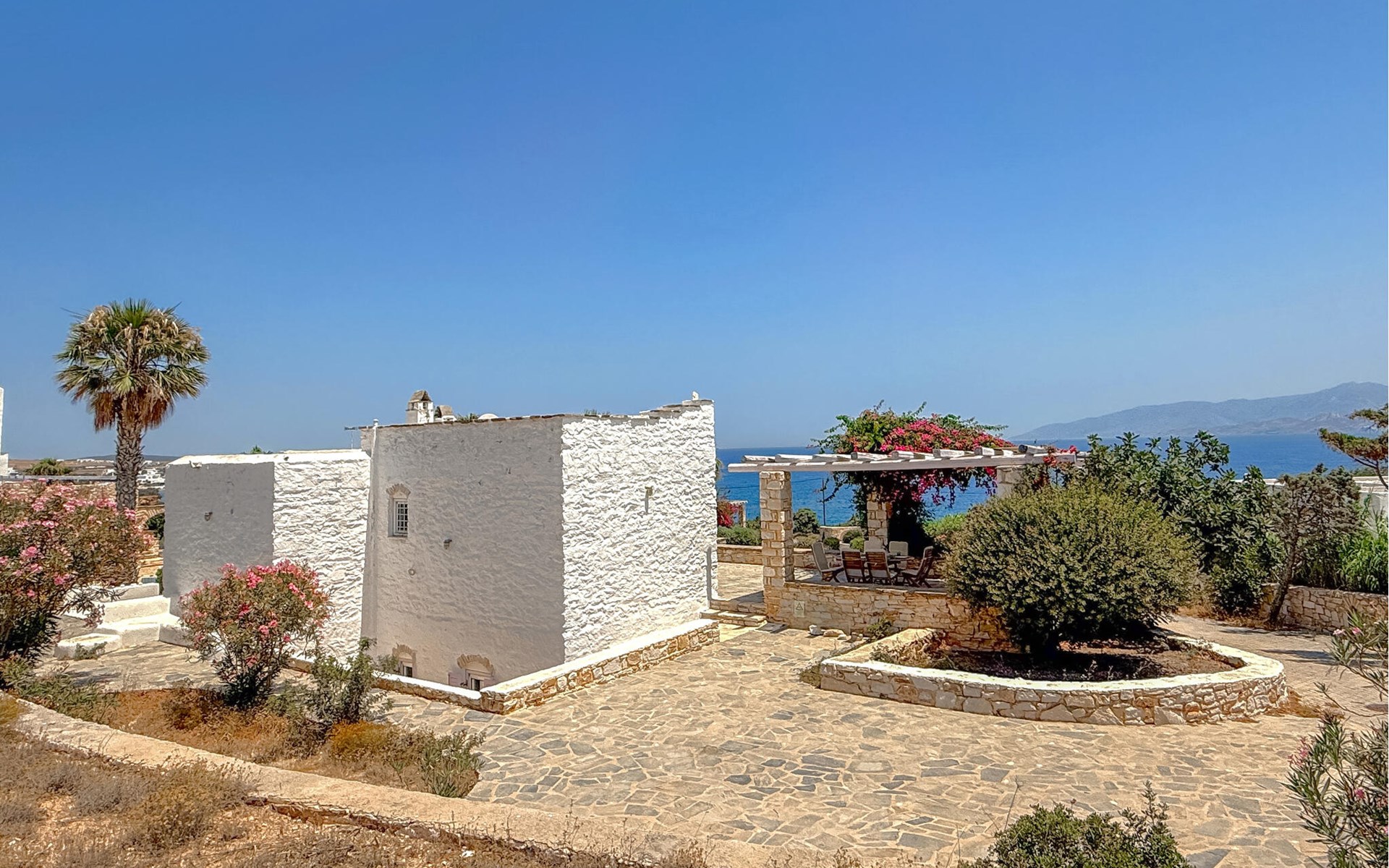 In de buitenruimte, versierd met bougainville, wachten charmante natuurstenen terrassen op je. Serveer je ontbijt in de schaduw en laat je blik afdwalen over de uitgestrekte zee. Maak het jezelf gemakkelijk op de ligstoelen en loungemeubels en klets tot in de warme zomeravond met een glas wijn.