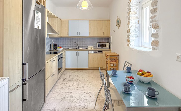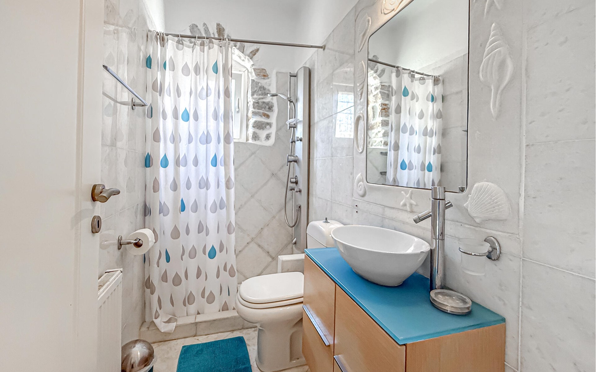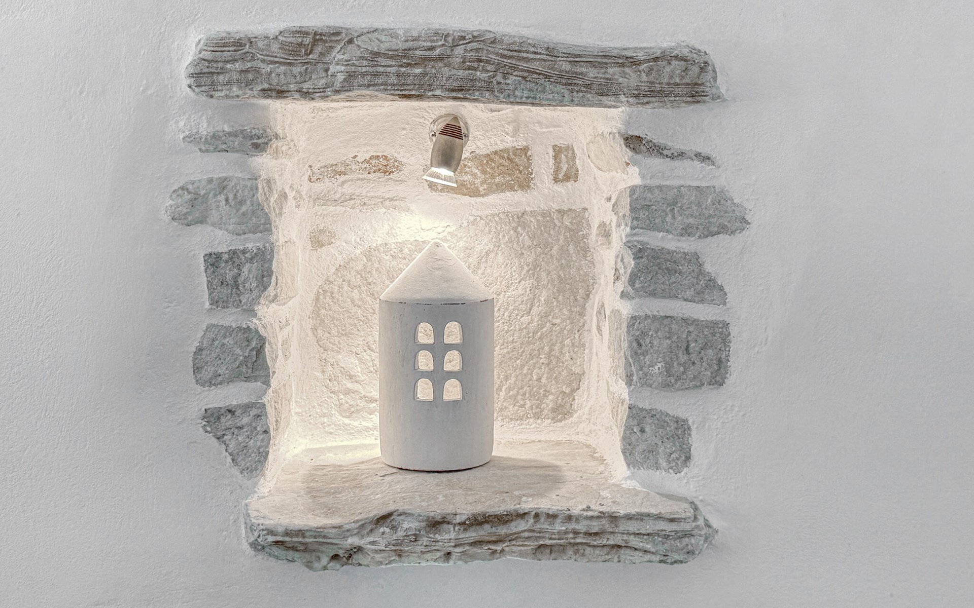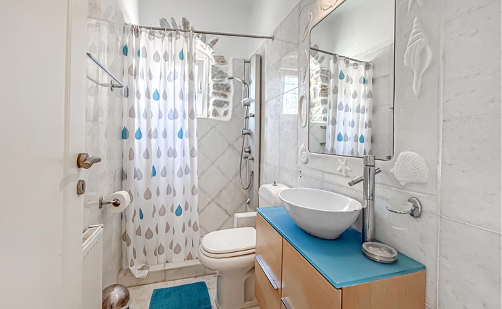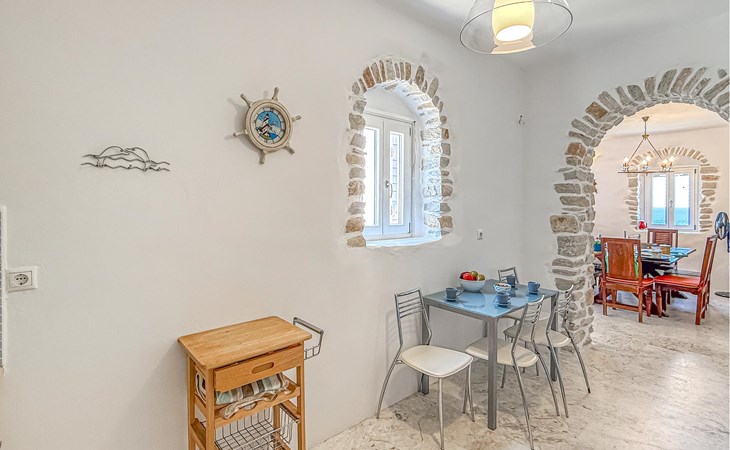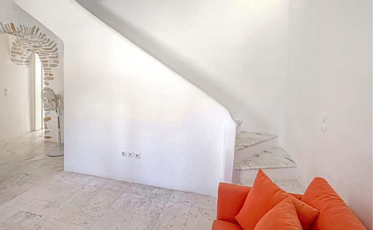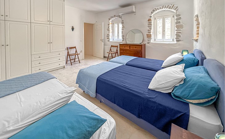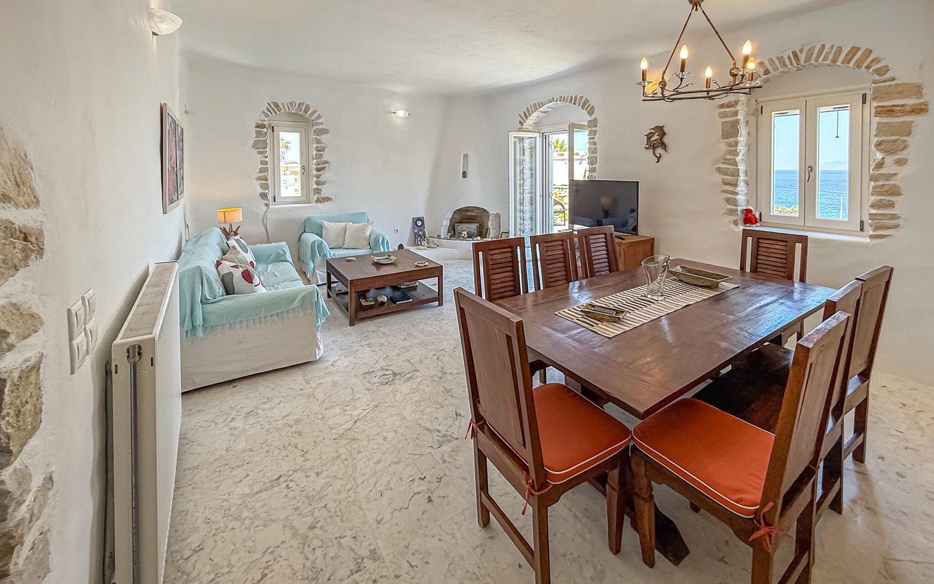 In de buitenruimte, versierd met bougainville, wachten charmante natuurstenen terrassen op je. Serveer je ontbijt in de schaduw en laat je blik afdwalen over de uitgestrekte zee. Maak het jezelf gemakkelijk op de ligstoelen en loungemeubels en klets tot in de warme zomeravond met een glas wijn.