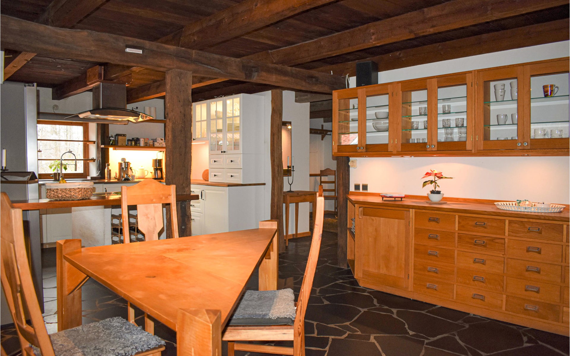 Hier woont u midden in de prachtige natuur met veel mogelijkheden voor uitstapjes te voet of met de fiets. De directe omgeving is vrij wild, zodat u vaak herten in de tuin kunt verwelkomen. Het huis biedt u een uitzonderlijk mooi interieur met veel hout en mooie details. Dankzij een beamer met groot scherm is ook een avond met home cinema mogelijk.