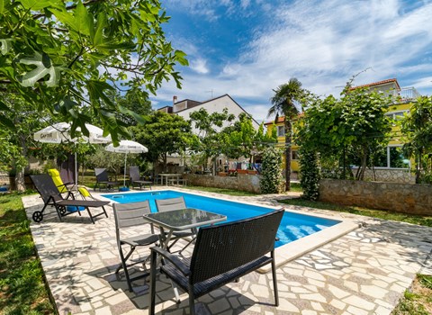 Deze comfortabele, gezellige vakantiewoning strekt zich uit over de gehele tweede verdieping van dit klassieke appartementenhuis. Het is gelegen in het kleine Istrische dorp Kastelir, vlakbij de beroemde en populaire vakantiegemeenschap Porec aan de kust.