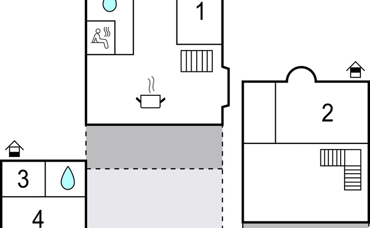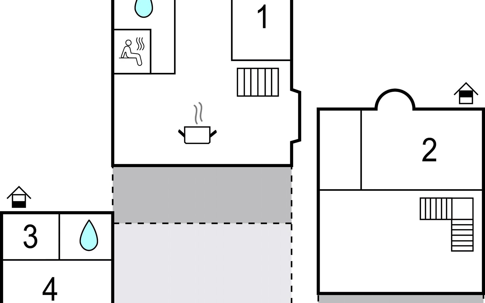 Dit huisje is een exclusieve Finse blokhut. Het is het hoogste gebouw in dit deel van Bukkemose. Op de 1e verdieping is er een balkon op het westen met uitgang vanuit de woonkamer en een klein balkon op het oosten, dat bereikbaar is vanuit de slaapkamer. De alkoof bevindt zich ook op de 1e verdieping en heeft een deur naar de woonkamer. Het huis heeft een totale woonoppervlakte van 92 m², waarvan 20 m² in het bijgebouw, waar zich een slaapkamer met tweepersoonsbed, een slaapkamer met 2 stapelbedden en een badkamer bevinden. Het bijgebouw en de hoofdwoning zijn verbonden door een prachtig groot open terras waar u vele aangename uren kunt doorbrengen.