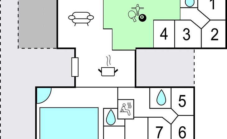 Een prachtig huis met 7 slaapkamers en een vide. Dit huis heeft een kamer waar je elkaar kunt uitdagen voor darts, tafeltennis en biljart. De kamer ligt naast de woonkamer/keuken, die netjes is ingericht. Het huis heeft ook een elegante biljartkamer met een aangrenzende sauna en een ruime whirlpool voor 6 personen. In het huis vind je meubels die je het gevoel geven dat je thuis bent gekomen. Sønderborg is niet ver weg en heeft goede winkelmogelijkheden, een drukke haven met een gezellige sfeer en de historische bezienswaardigheden Dybbøl Mølle en Kasteel Sønderborg. Vlakbij ligt het avonturenpark Universe, waar je je urenlang kunt vermaken met wetenschappelijke en technische fenomenen. Beddengoed, handdoeken, kinderbed en kinderstoel kunnen gehuurd worden tegen NOVASOL's catalogusprijzen.