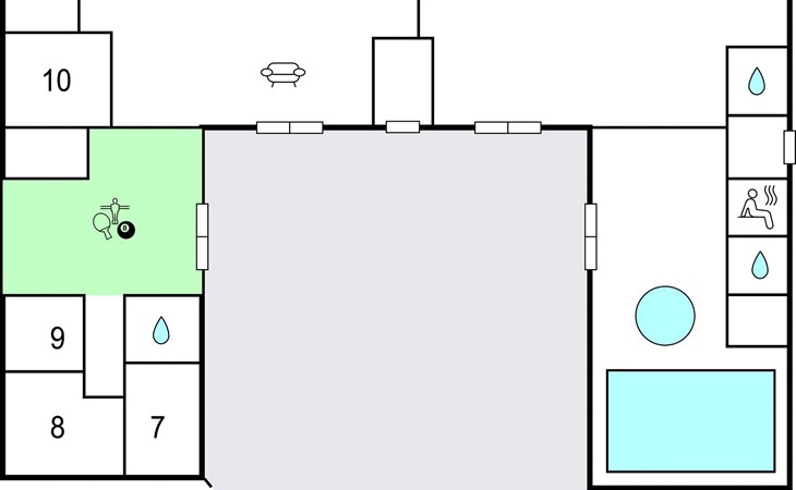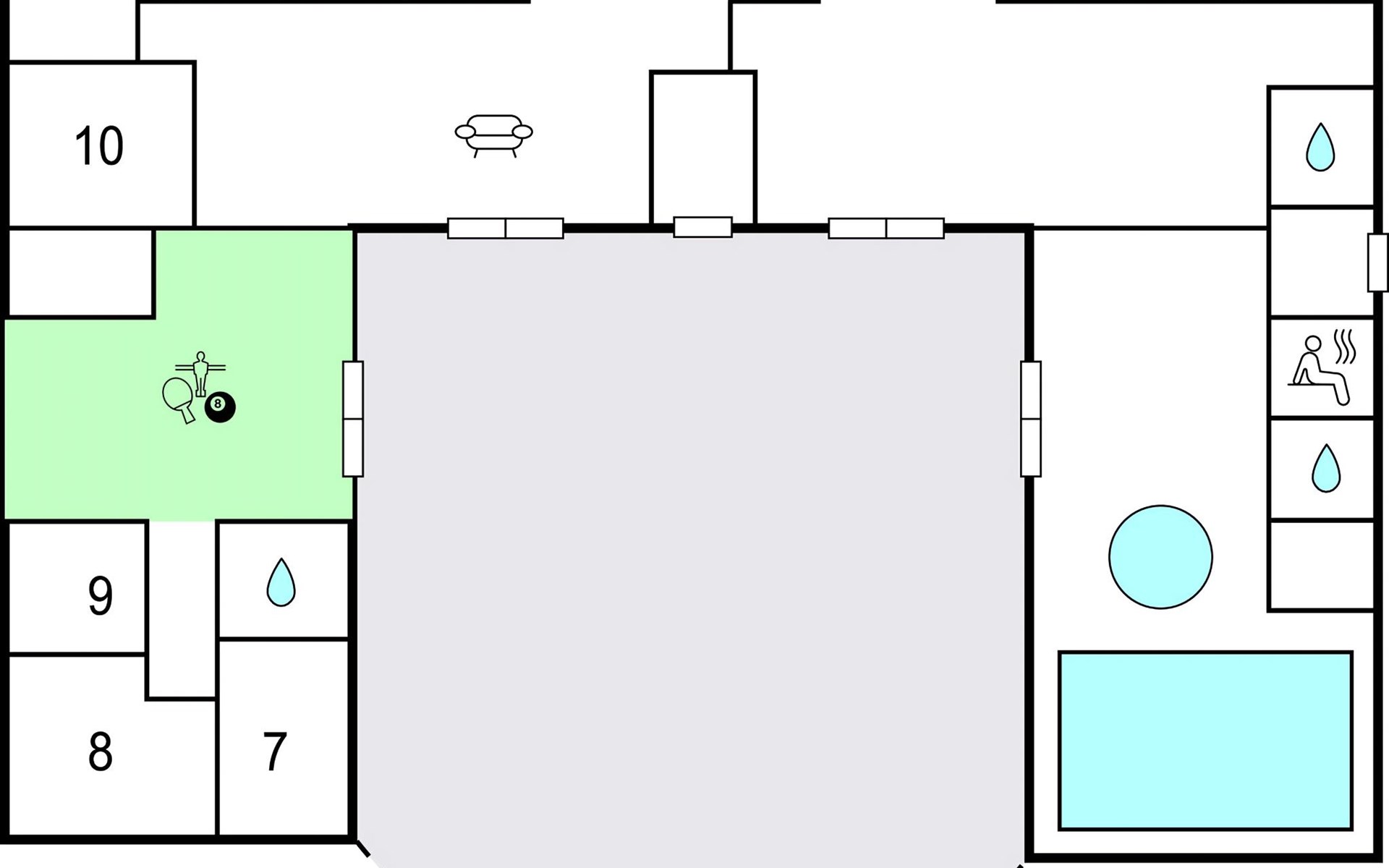 Dicht bij de duinen van de Noordzee wacht dit luxe vakantiehuis op u. Vester Husby ligt vlak bij de duinplantage Husby, waar een heel bijzondere natuurbeleving op u wacht als u gewoon de gemarkeerde paden volgt. In de omgeving zijn er talloze winkels, fietsverhuur, restaurants, galeries en kunstwinkels. U kunt vissen in de rivier, zee en fjord. Deze zeer goed ingerichte parel van een vakantiehuis met een rieten dak en voorzien van alles wat u nodig kunt hebben. Zwembad met tegenstroom, waterglijbaan, whirlpool en sauna. In de grote herenruimte kunt u een drankje mixen aan de bar, darten of biljarten. Tafeltennis, airhockey en tafelvoetbal zijn beschikbaar in de activiteitenruimte. Maak het uzelf ook gemakkelijk in de caféhoek. PlayStation2 en gratis internet zijn ook beschikbaar. Er is genoeg ruimte voor 24 personen in het ruime huis. De 10 slaapkamers zijn verdeeld in drie slaapgedeeltes, elk met een eigen badkamer. De zomen kunnen tot 4 personen slapen. Het enorme perceel van 5200 m² is geweldig voor balspelen, en de kleinste vakantiegasten kunnen schommelen en spelen in de zandbak. De ouderen kunnen zich ook thuisvoelen in het comfortabele tuinmeubilair.