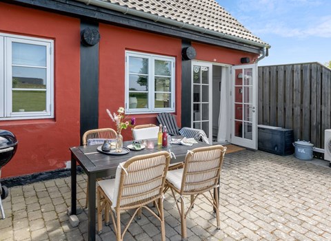 Welkom aan de prachtige oostkust van Zuid-Jutland in dit prachtige huis. Hier kun je genieten van een paar rustige dagen en er even helemaal tussenuit. Binnen is het huis ingericht in warme houttinten, aangevuld met lichte details en glas-in-loodramen. Maak het jezelf gemakkelijk aan de eettafel en neem de tijd voor een kopje koffie terwijl je je blik laat dwalen over de fantastische omgeving. Als je de deur naar het terras opent, ligt het blauwe panorama recht voor je, de ideale setting voor zomerse maaltijden. Als je 's avonds terugkomt van je excursies, kun je ook luisteren naar het geluid van de golven.