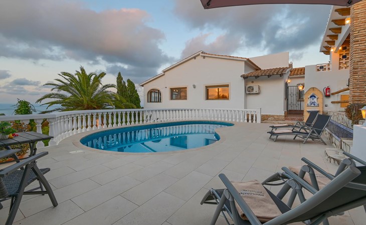 Heerlijke en comfortabele villa met privézwembad in Denia, Costa Blanca, Spanje voor 6 personen. Het huis is gelegen in een residentiële strandwijk, dicht bij een tennisbaan, 3 km van Las Marinas, Denia strand en 5 km van Xàbia.