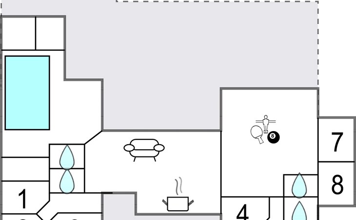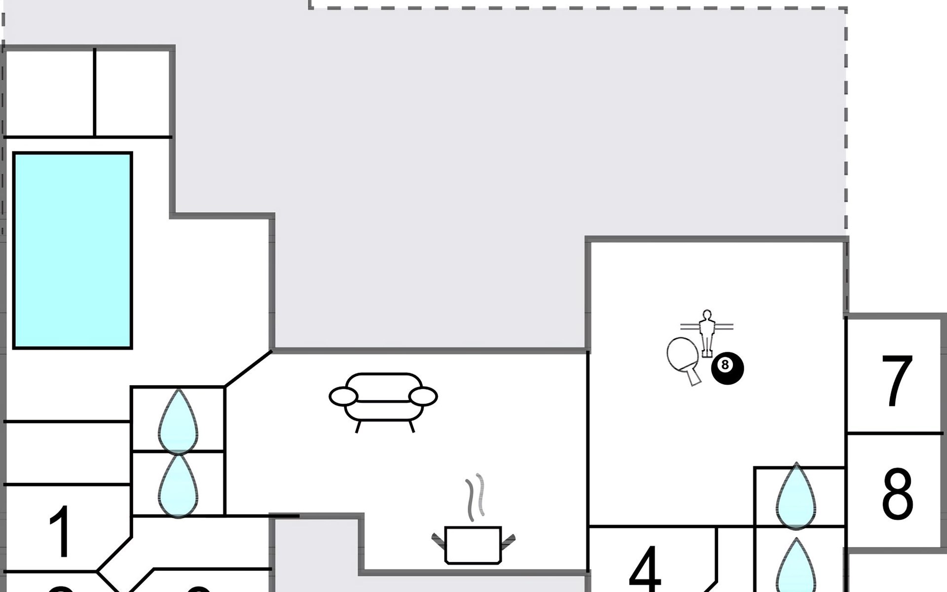 In het ruime huis maak je het jezelf gemakkelijk met meerdere gezinnen en zal het je aan niets ontbreken op vakantie. De lichte kamers met moderne inrichting en grote ramen die veel natuurlijk licht binnenlaten, zorgen voor een gezellige sfeer en bieden veel ruimte voor gezamenlijke activiteiten. Of je nu familieduels organiseert aan de pooltafel, urenlang spettert in het zwembad met jong en oud of ontspant in de zithoek met een prachtig uitzicht op de buitenlucht, hier is geen plaats voor verveling op vakantie. Geniet na een actieve dag van een rustgevende sessie in de eigen sauna van het hotel.