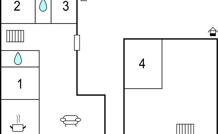 Via de grote hal komt u in de woonkamer met open haard, zithoek, tv en tafel met 4 stoelen. De eenvoudige maar zeer gezellige keuken is voorzien van alle benodigde apparatuur en heeft een leuke zithoek met grote tafel, bank en stoelen.