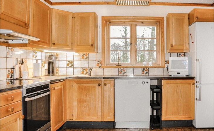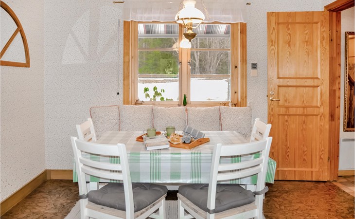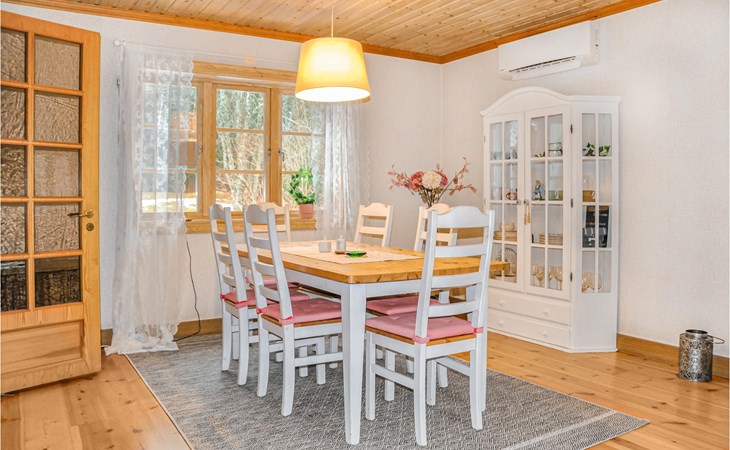 Dit rode vakantiehuis ligt in het prachtige landschap van Dalsland en dicht bij het Edslanmeer. Het nodigt je uit om te genieten van een heerlijke vakantie met vistochten, zwemmen en wandelen. Het hoge plafond, de balken aan het plafond, het behang, de warme kleuren, de inrichting en de gezellige verlichting zorgen voor een sfeervolle ambiance in het huis. Zet de koffie, haal de broodjes uit de oven en plan het programma voor de komende dagen in de eetkeuken. Je kinderen willen vast en zeker op de bank met de gezellige kussens zitten! Barbecue 's avonds de vangst van de dag en geniet van wat quality time met het gezin buiten. Papa zegt dat hij het hardst kan rennen? Organiseer een hardloopwedstrijd voor het hele gezin op het grote natuurterrein. In de buurt kun je heerlijk vissen en zwemmen.
