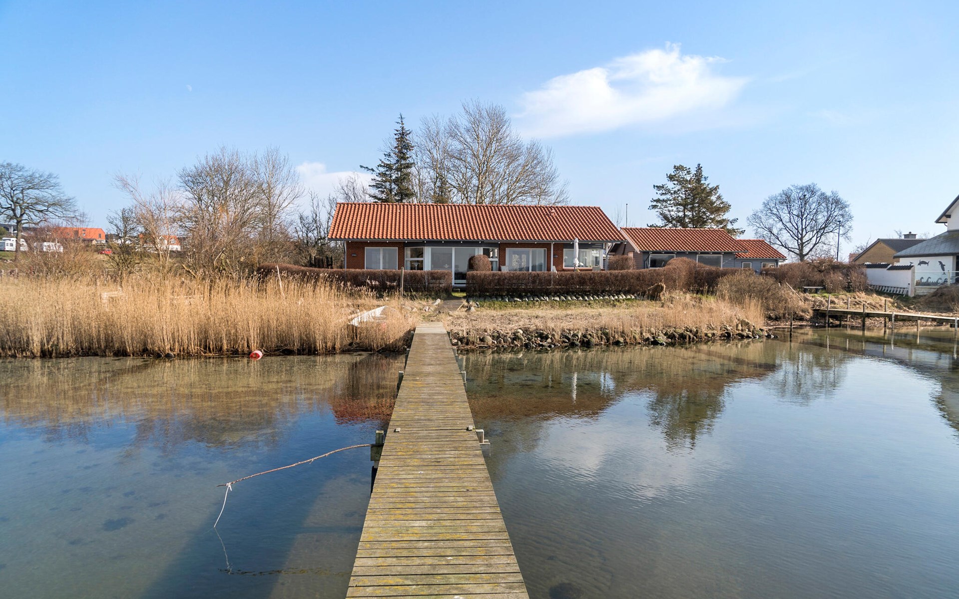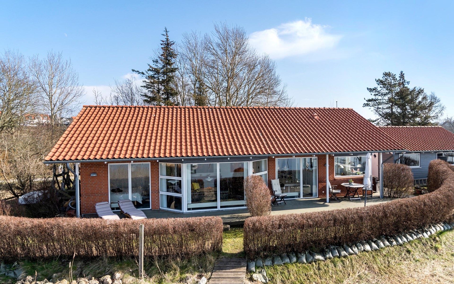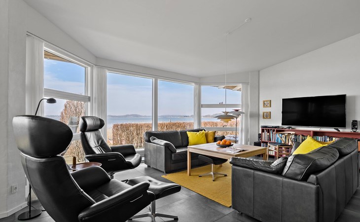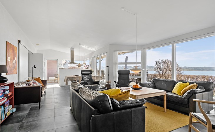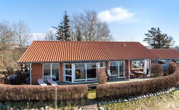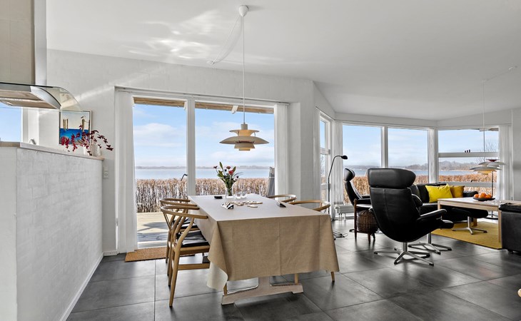 Geniet van ontspannende dagen in dit prachtige vakantiehuis direct aan Hejls Nor.