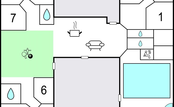 Werkelijk prachtig vakantiehuis met alle faciliteiten. De gezellige eetkeuken zal als aangenaam middelpunt van het huis fungeren. Het zwembad met de glijbaan, de massage in de whirlpool en de warmte van de sauna zijn zeker aantrekkelijk - pure wellness wordt u hier geboden. In de speelkamer beschikt u over biljart, tafelvoetbal, tafeltennis en nog veel meer variatie. Als het avond wordt, geniet u van een drankje aan de bar. Er zijn negen slaapkamers en een slaapzolder in het huis. De verdieping is vooral geschikt voor kinderen, zij zullen hier graag vertoeven. Drie prachtige badkamers maken de heerlijke ervaring compleet. Als excursiebestemmingen zijn Heatherhill of de Förhenwald Troldeskov in Tisvildeleje ideaal. In Tisvildeleje zijn er goede restaurants, cafés en leuke winkels. Borg en eindschoonmaak worden bij aankomst ter plaatse verrekend.