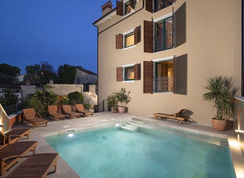 De fantastische Villa Koko aan de rand van Rovinjsko Selo, een klein stadje in de buurt van Rovinj, is het ideale vakantiehuis voor maximaal 12 gasten die op zoek zijn naar pure ontspanning en comfort. De villa heeft een ruime tuin met een groot privézwembad, 12 gezellige ligstoelen en een overdekte eethoek met een houtskoolbarbecue, ideaal om buiten te eten op zonnige dagen. Het interieur van 600 m2 is verdeeld over twee verdiepingen en bestaat uit in totaal 6 slaapkamers, elk met een eigen badkamer en airconditioning. 5 slaapkamers bevinden zich op de begane grond en één op de bovenverdieping. De volledig uitgeruste keuken met eethoek en de woonkamer bevinden zich op de bovenverdieping, waar je een prachtig uitzicht hebt op de omgeving en de zee. Grote glazen oppervlakken zorgen voor natuurlijk licht in het interieur, dat eenvoudig maar luxueus is ingericht. Voor meer ontspannende momenten is er een grote overdekte jacuzzi en een sauna. Voor extra entertainment heeft de villa een bioscoopkamer met airconditioning, uitgerust met een grote, ruime bank met lig- en zitgedeeltes. De 75-inch smart tv met hoogwaardig beeld en surround speakers versterkt de realistische indruk van elke film. Samen met warme popcorn uit de automaat in de bioscoop is entertainment gegarandeerd! Villa Koko biedt alles voor een zorgeloze vakantie in de privacy van je eigen paradijs, terwijl alle voorzieningen zoals restaurants en supermarkten op loopafstand liggen. De Lim Baai is slechts een klein eindje rijden, net als het romantische stadje Rovinj en de omliggende stranden. Deze villa ligt in een idyllisch landschap in het kleine dorpje Rovinjsko selo, een rustige buitenwijk van Rovinj. Het wordt gekenmerkt door traditioneel gebouwde stenen huizen en het prachtige groen van de velden, wijngaarden en omliggende bossen. De geweldige locatie van de buitenwijk is ideaal voor een dagelijkse verkenning van de oude stad Rovinj en haar ongeëvenaarde charme. Voel de magie van de stad in de smalle middeleeuwse straatjes en de warme mediterrane omgeving. Vanaf de kerk van St Euphemia, waar het mooiste uitzicht over de stad op je wacht. Bezoek andere bezienswaardigheden zoals het kasteel op het eiland St Andrija, het Franciscaner klooster en de stadsmuren. Rovinj is een van de meest romantische steden in Kroatië met prachtige zonsondergangen die je de adem benemen. De omgeving biedt echter ook talloze vrijetijdsactiviteiten: Fietsen, paardrijden, joggen...