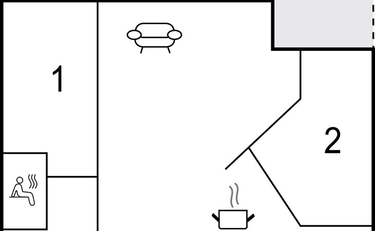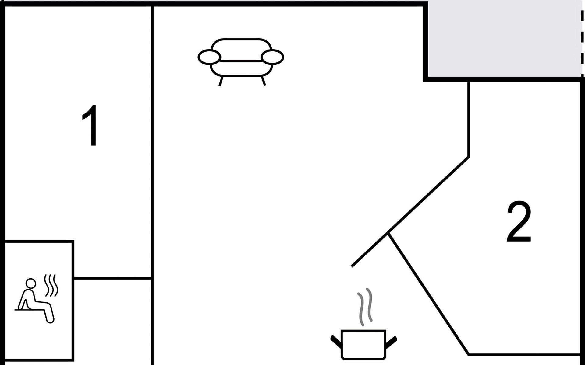 Uw vakantiewoning bevindt zich op de begane grond van het complex. Het heeft twee aparte slaapkamers, elk met een comfortabel tweepersoonsbed. In het woongedeelte kunt u het zich gemakkelijk maken voor het gezellige licht van de bio-ethanolhaard. In het woongedeelte vindt u ook de slaapbank, die twee extra slaapplaatsen biedt. Een kinderbedje kan alleen in de woonkamer worden geplaatst, omdat er in de slaapkamer niet genoeg ruimte is.