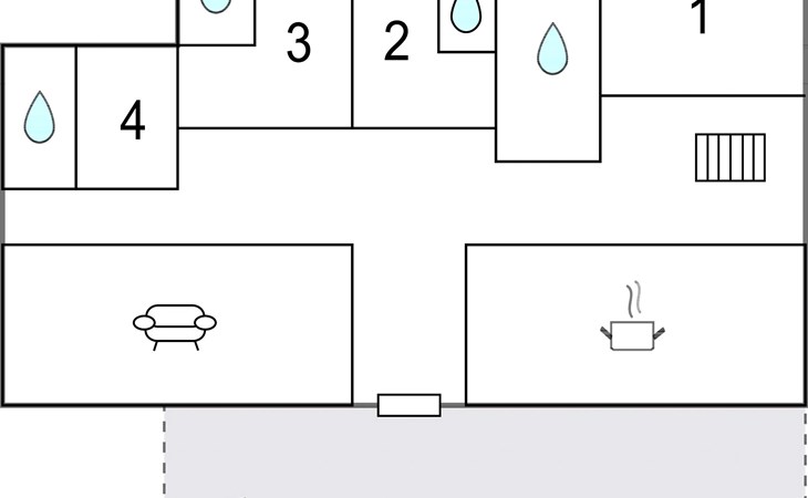 Het huis is verdeeld over één verdieping. De overige slaapkamers bevinden zich op de begane grond, waarvan er 3 een geïntegreerde badkamer hebben en de badkamer van de laatste slaapkamer zich buiten de kamer bevindt.