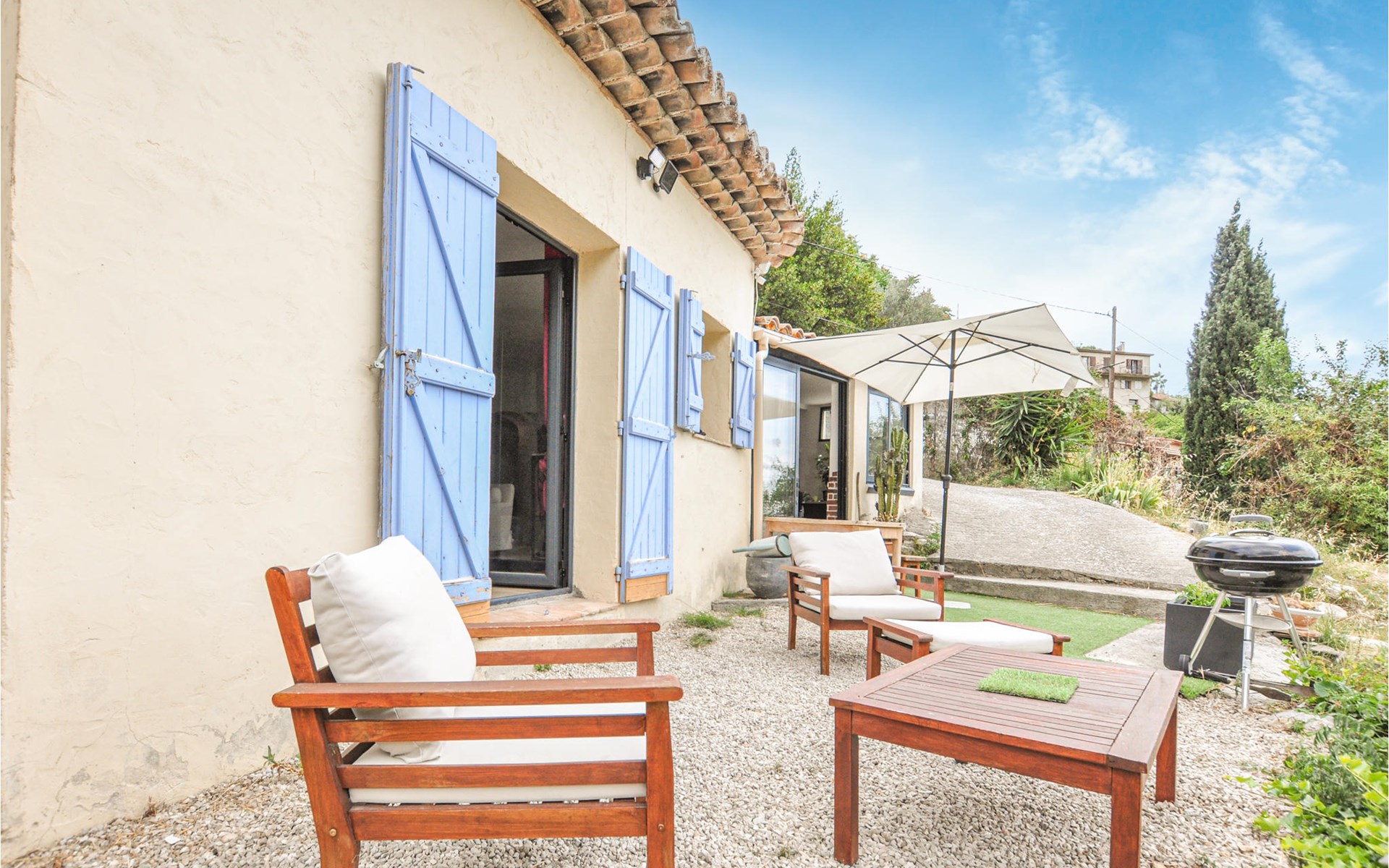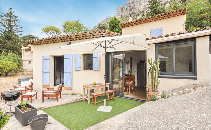 Aan de voet van de spectaculaire kalksteenrots Baou de Saint-Jeannet heet dit vakantiehuis je welkom in het dorp Saint-Jeannet. Van buiten heeft het een zuidelijke uitstraling met zijn mooie pannendak en zandkleurige muren. Binnen vind je lichte en praktisch ingerichte kamers in een rustieke stijl, die uitnodigen tot een comfortabele vakantie.