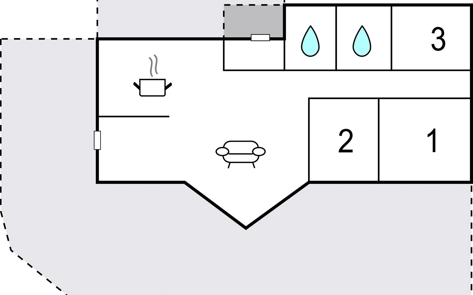 Vanuit de woonkamer heeft u toegang tot een groot terras waar u heerlijk buiten vakantie kunt vieren. Er is voldoende ruimte op het terras voor koffie in de ochtend en diner in de buitenlucht.