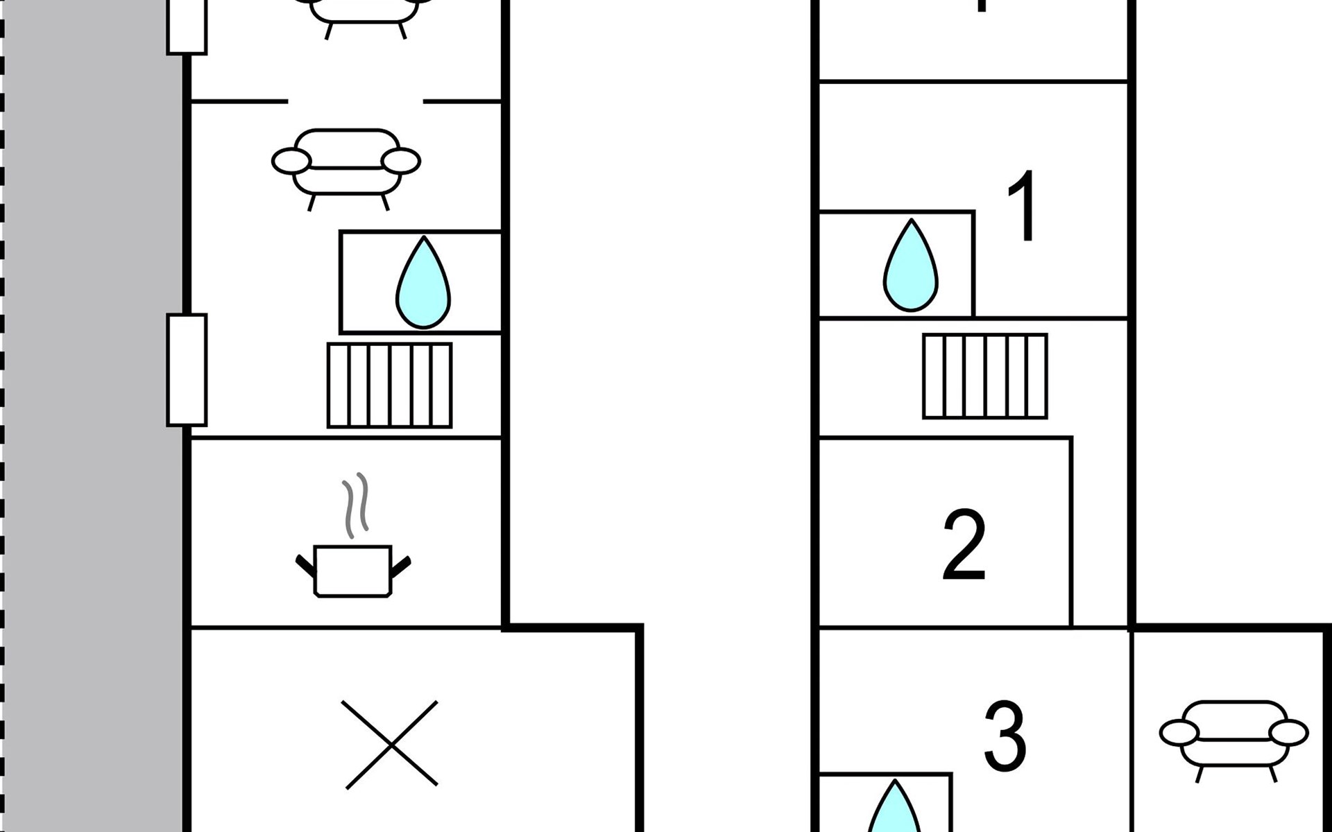 - Slaapk. tevens doorgang: