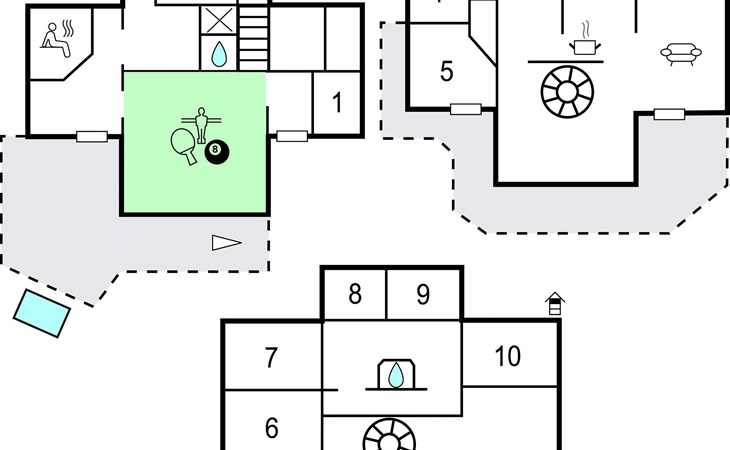 Het huisje is gezellig ingericht en biedt ruimte voor de hele uitgebreide familie of een groep vrienden. De eetkamer heeft grote ramen die zorgen voor veel licht en een prachtig uitzicht op de omgeving. Hier kunnen jullie allemaal samenkomen voor lekkere maaltijden en in de woonkamer kunnen jullie samenkomen voor leuke bordspellen en mooie gesprekken. Het huis heeft ook een eigen pooltafel (die kan worden omgezet in een tafeltennistafel), een fitnessruimte en een heerlijke sauna, perfect voor de koudere dagen.