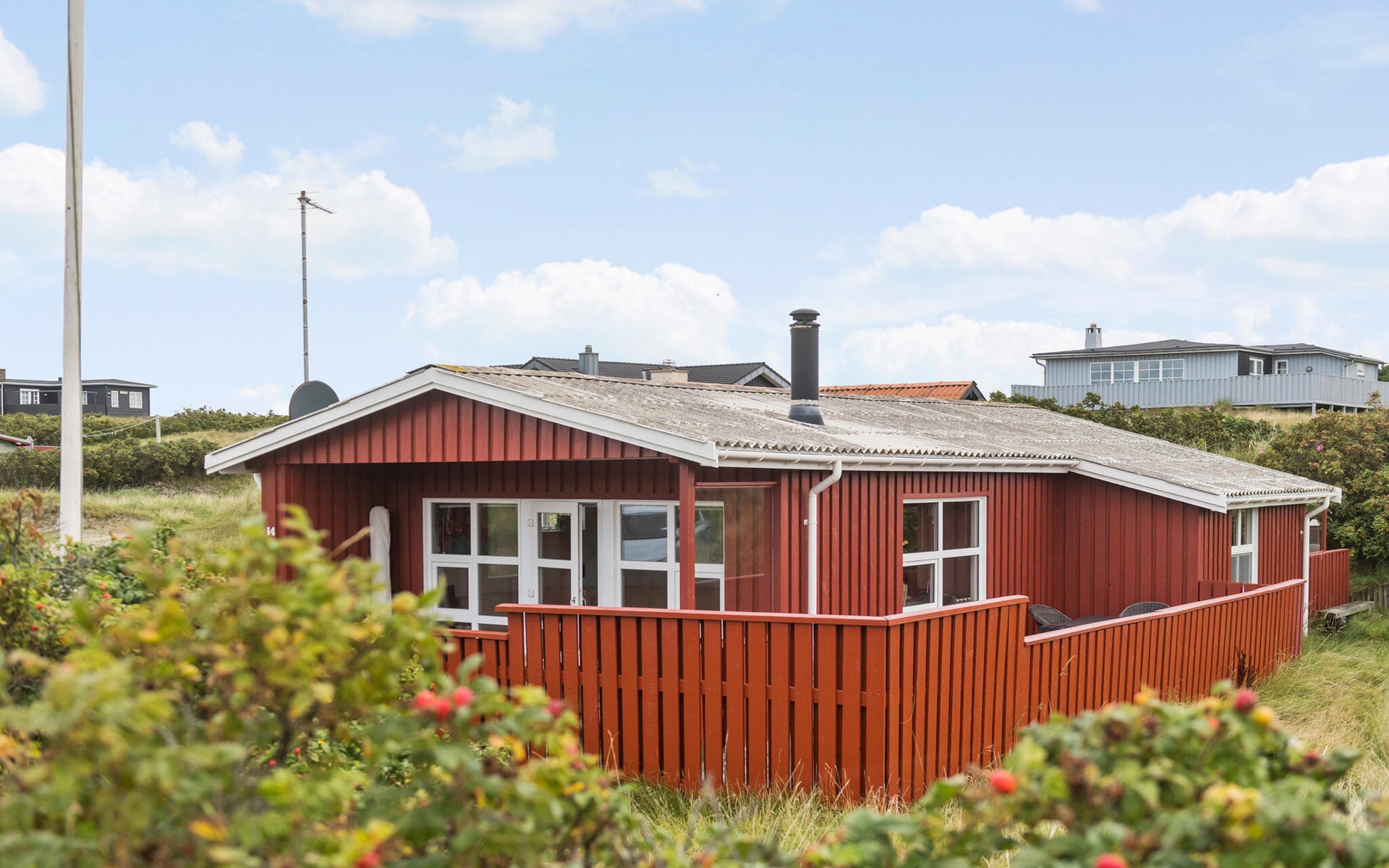 Je uitnodigende vakantiehuis in Rindby ligt in de eerste duinenrij en biedt je een idyllische omgeving, op slechts een korte wandeling van de Noordzee. Omgeven door een schilderachtig landschap achter de hoge duinen, vind je een gezellig ingericht huis met verschillende mooie terrassen en een praktische schuur voor het veilig stallen van je fietsen. De kleine, functionele keuken is uitgerust met alles wat je nodig hebt voor je vakantiemaaltijden. Bereid heerlijke maaltijden en geniet ervan op het terras op warme zomerdagen.