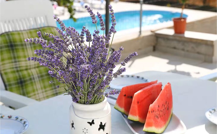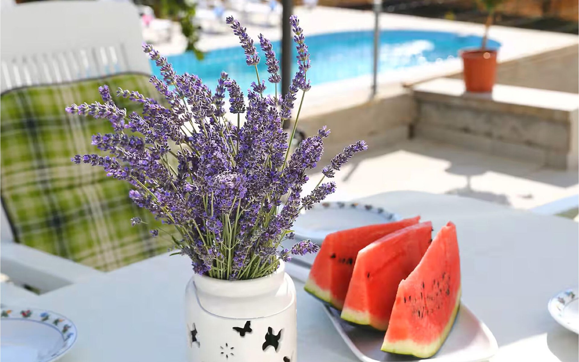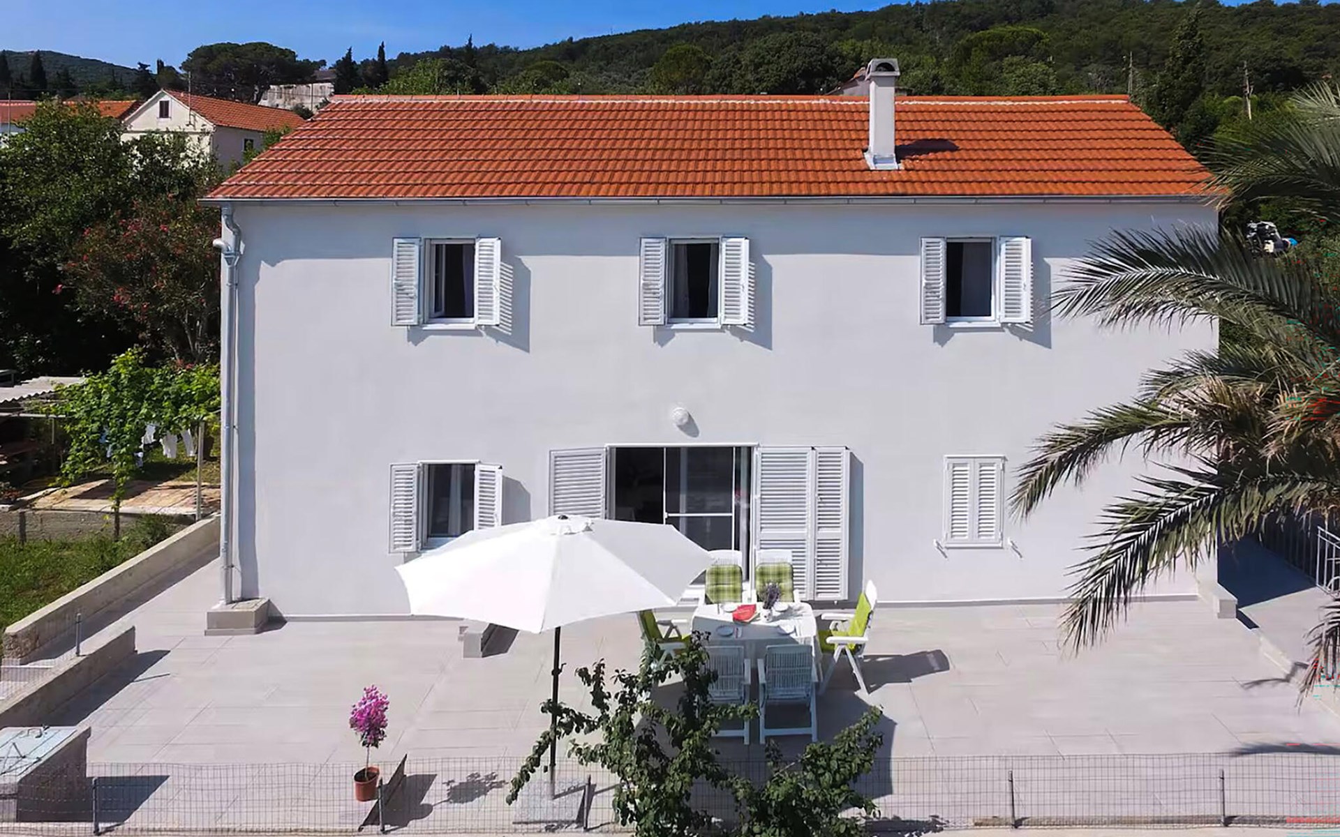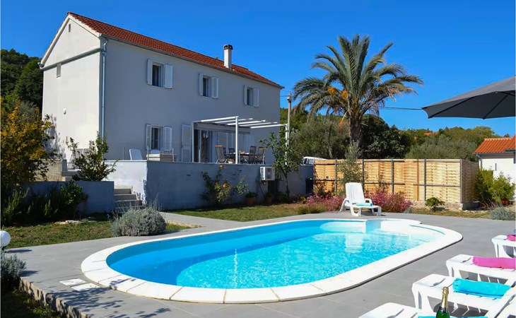 Drie slaapkamers, twee badkamers en een woonkamer met keuken verwelkomen tot acht gasten. Het vakantiehuis is licht en vriendelijk ingericht. In uw grote privé tuin vindt u uw privé zwembad. Hier kunt u de hele dag genieten van het heerlijke Kroatische weer. Op het deels overdekte terras kunt u 's ochtends ontbijten of de dag afsluiten met een glas wijn terwijl u geniet van het prachtige uitzicht. Een barbecue voor gezellige barbecue-avonden staat ook tot uw beschikking.
